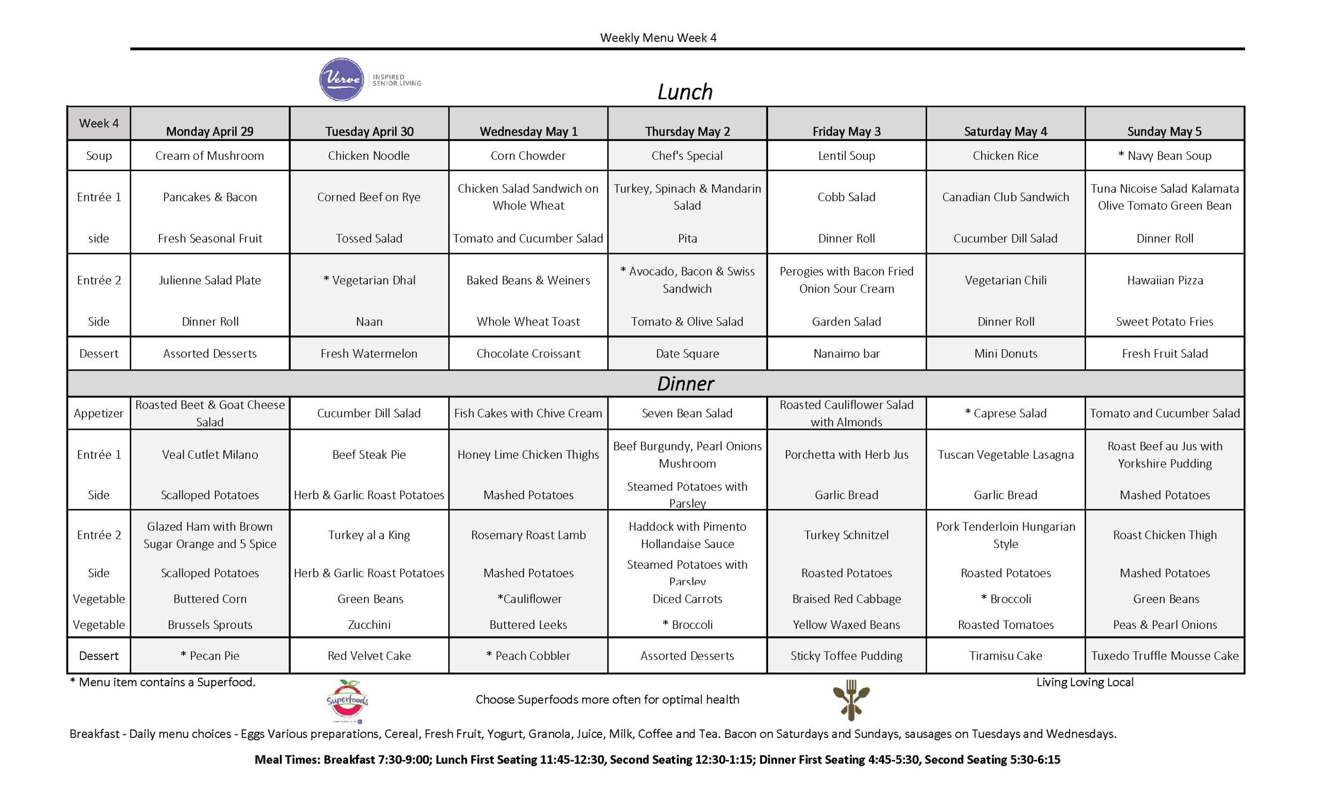 April 29th – May 5th, 2024 – Week 4 Dining Menu!