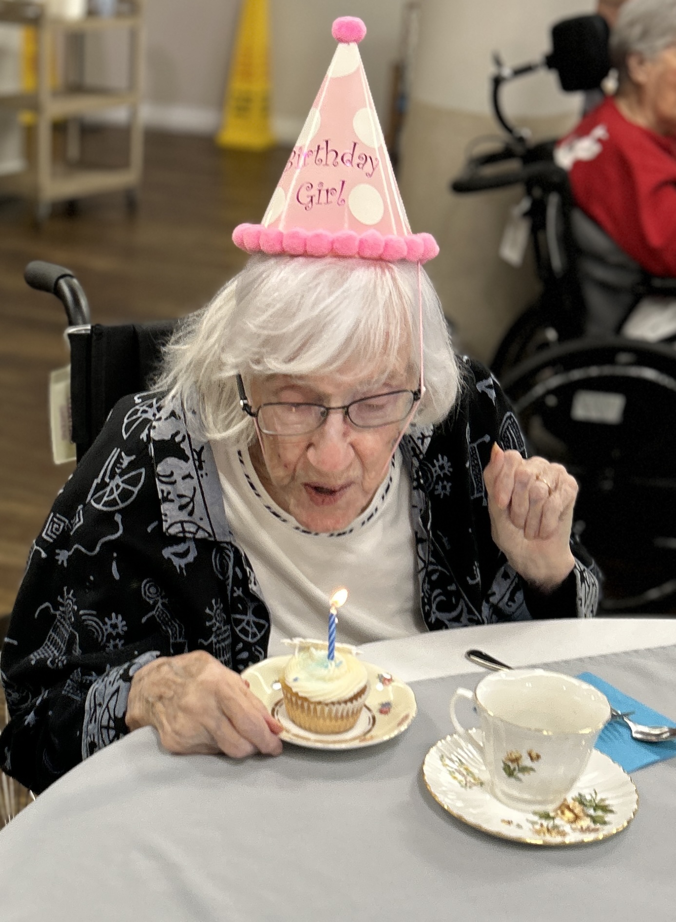 We celebrated our January birthdays last week, here is one of our residents blowing her candle out! It is always so much fun celebrating with each other with live music and our wonderful kitchen staff made the most delicious cupcakes.