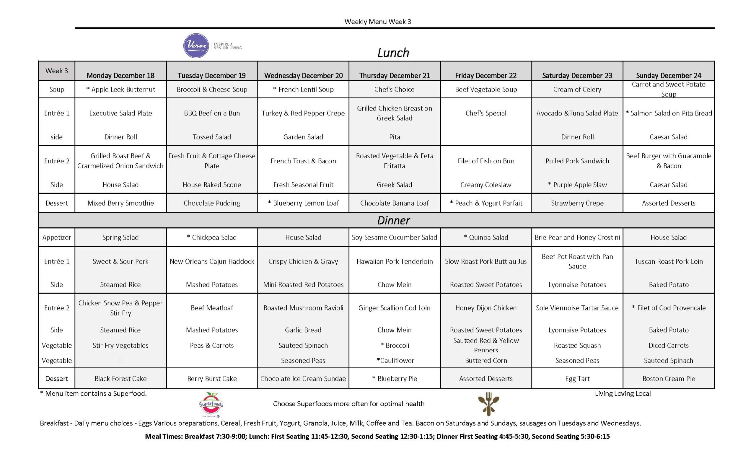 December 18th – 24th, 2023 – Weekly Menu!