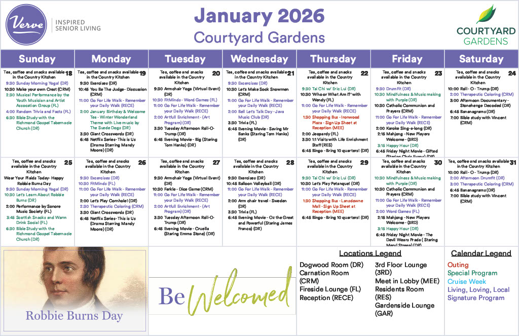 January 2026 – Independent and Assisted Living Monthly Calendar