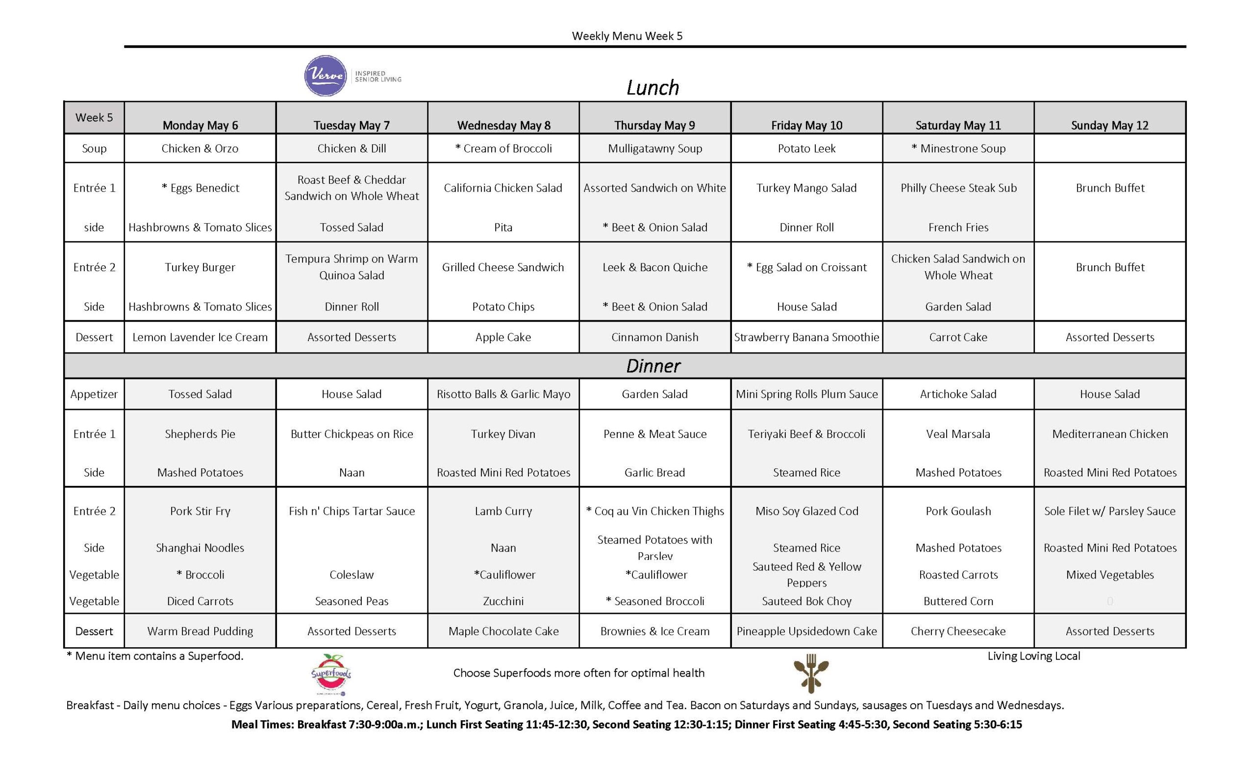 May 6th – 12th, 2024 – Week 5 Dining Menu!