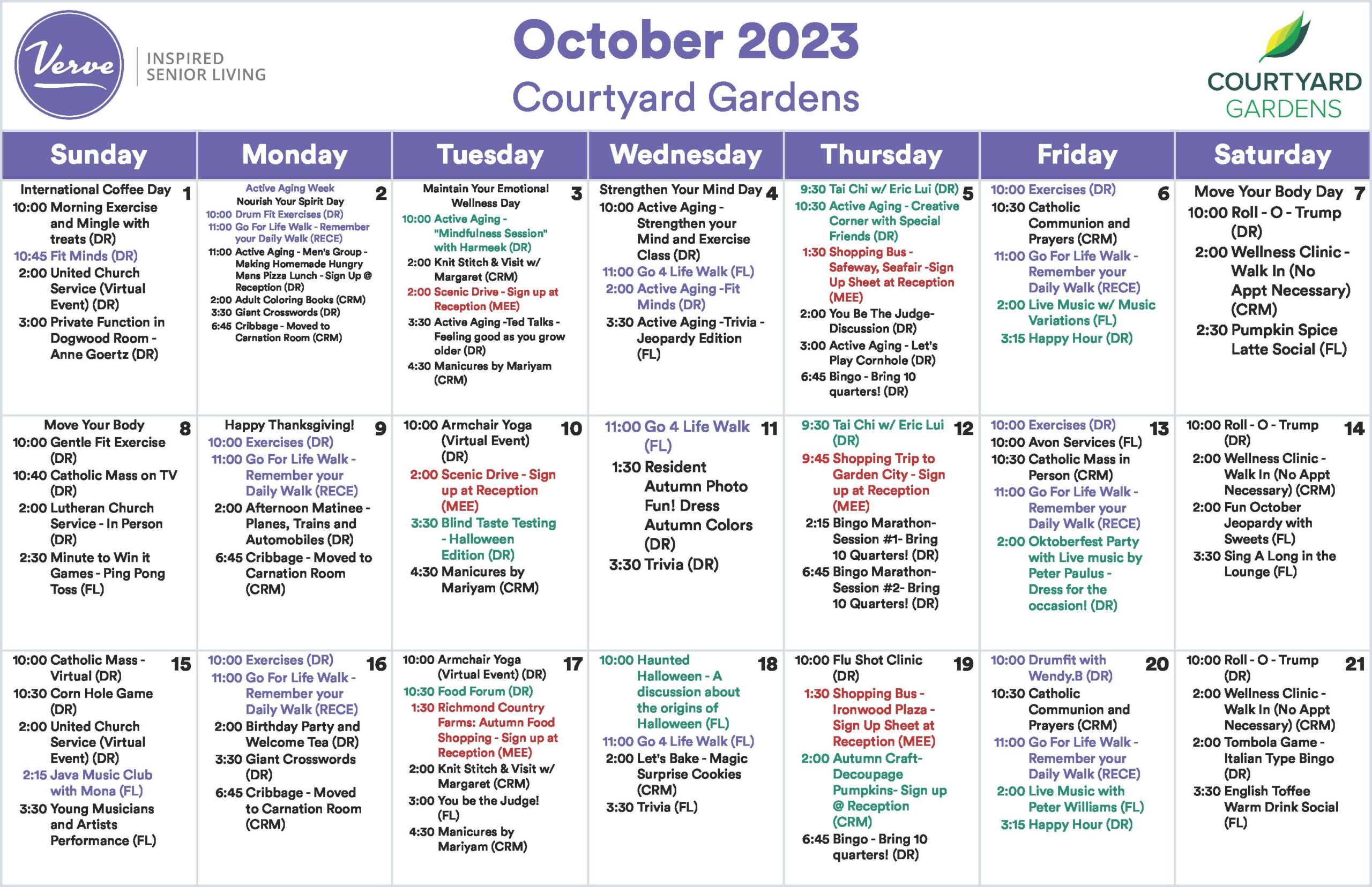 October, 2023 – Assisted Living Calendar