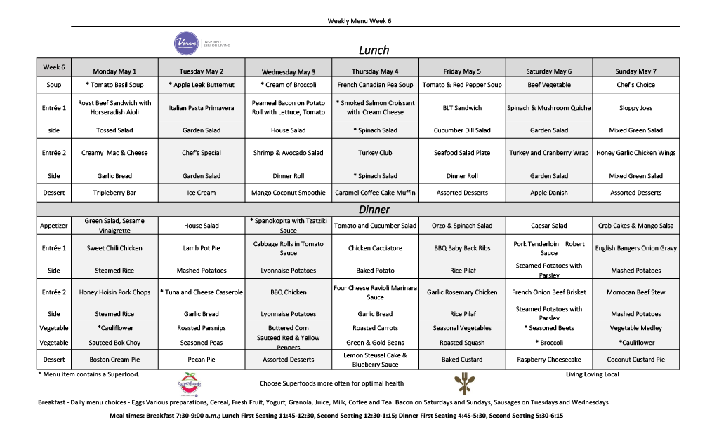 Spring Menu – Week 6 (Apr 24th to Apr 30th)