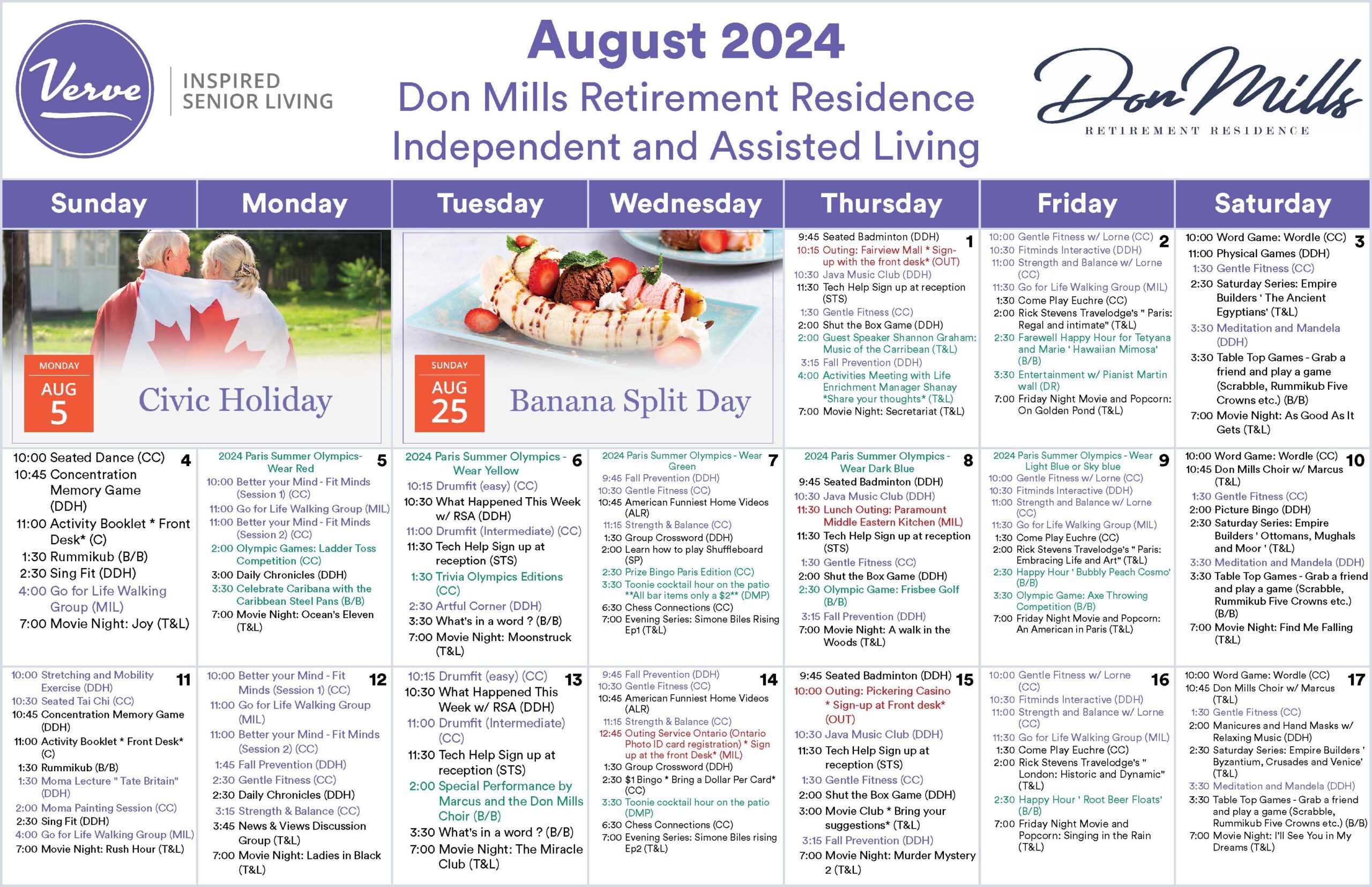 August 2024 – Monthly Independent & Assisted Living Activity Calendar