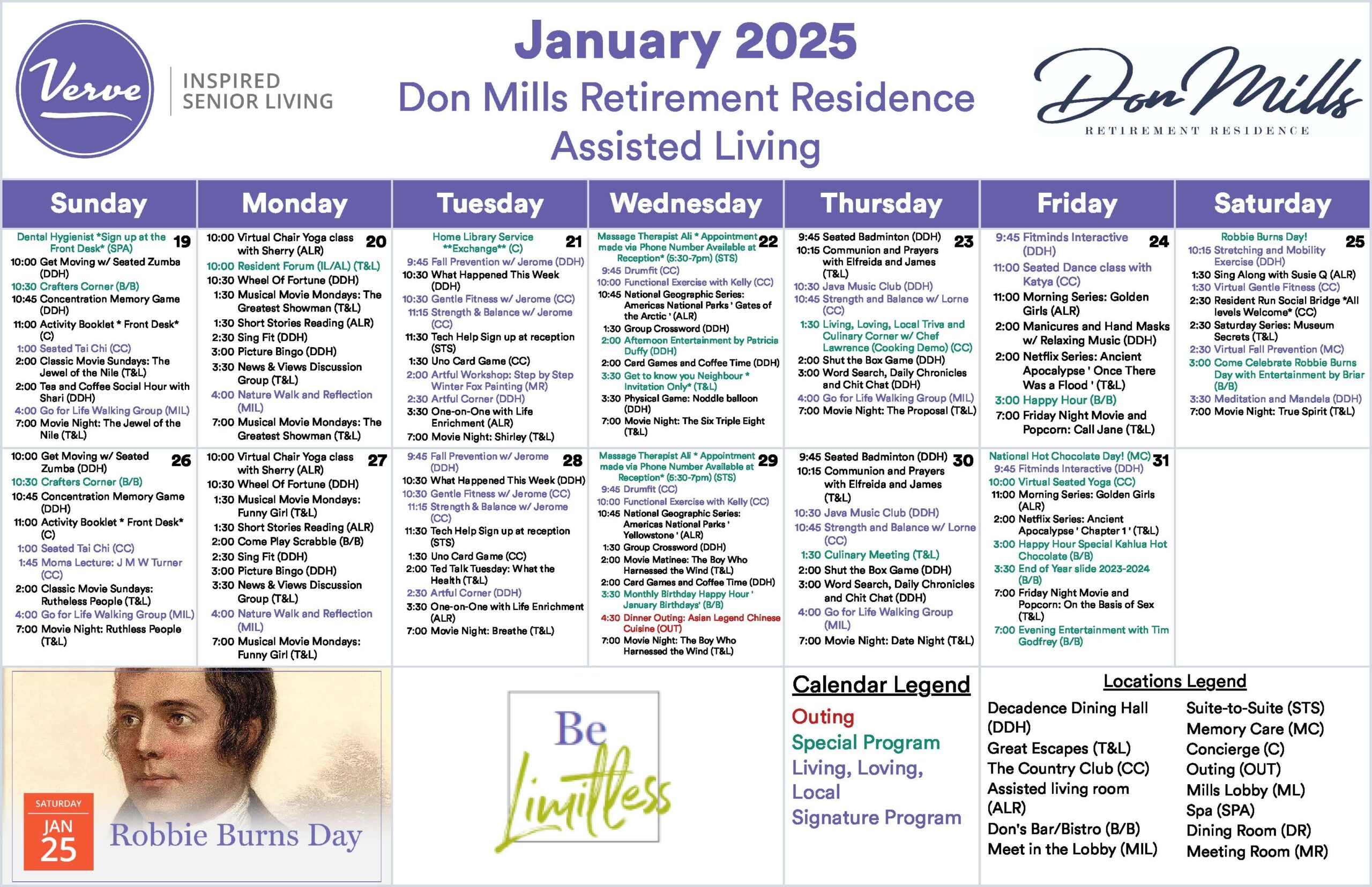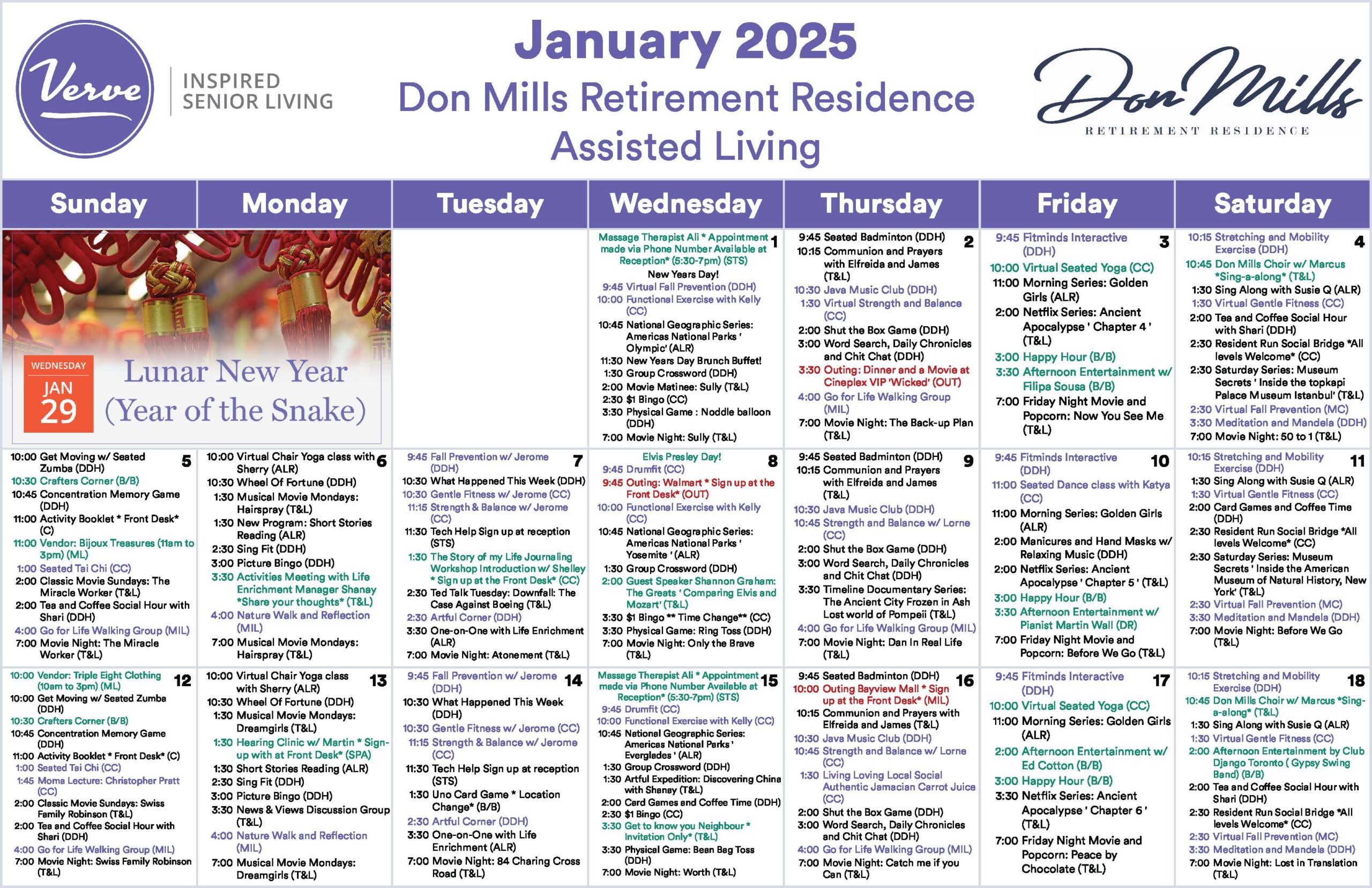 January 2025 – Monthly Assisted Living Activity Calendar!