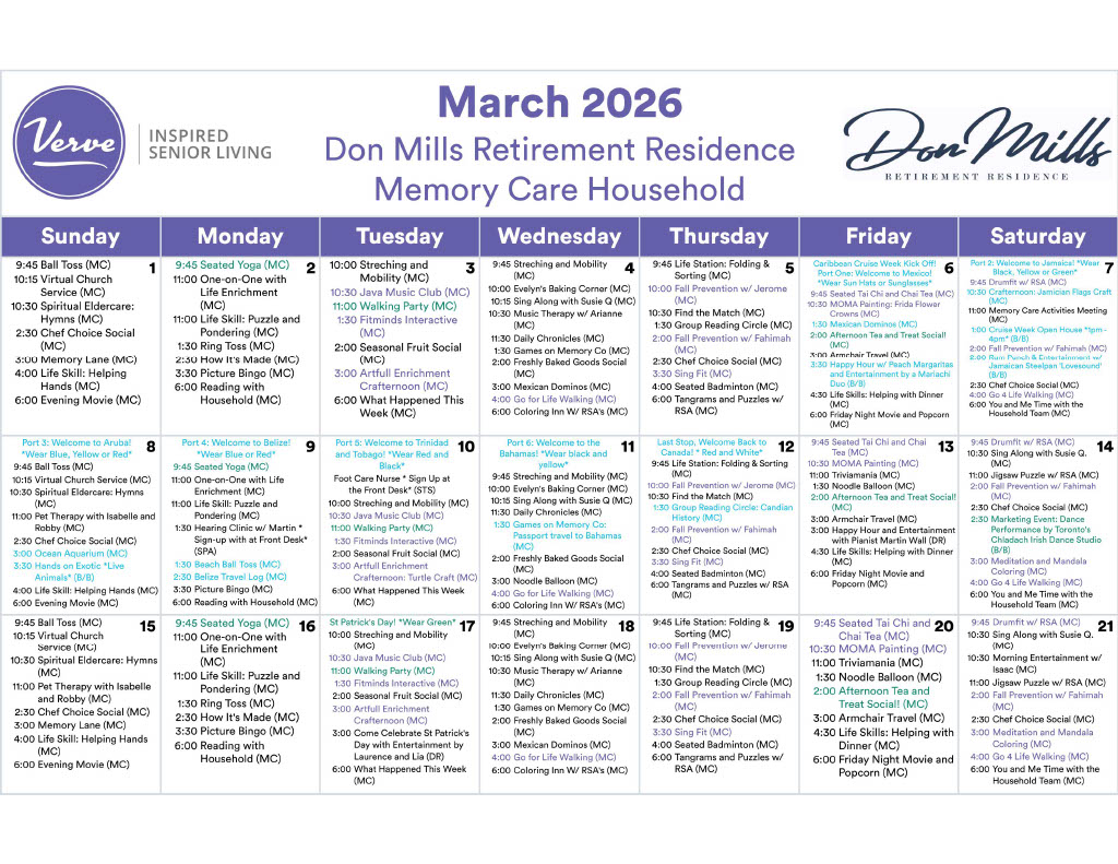 March 2026 – Memory Care Monthly Calendar