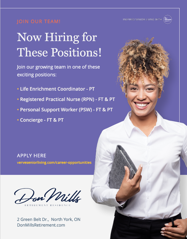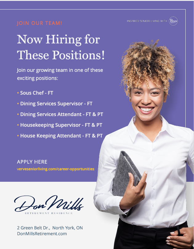 Looking to become a part of the Verve team?! Don Mills Retirement Residence is NOW HIRING!