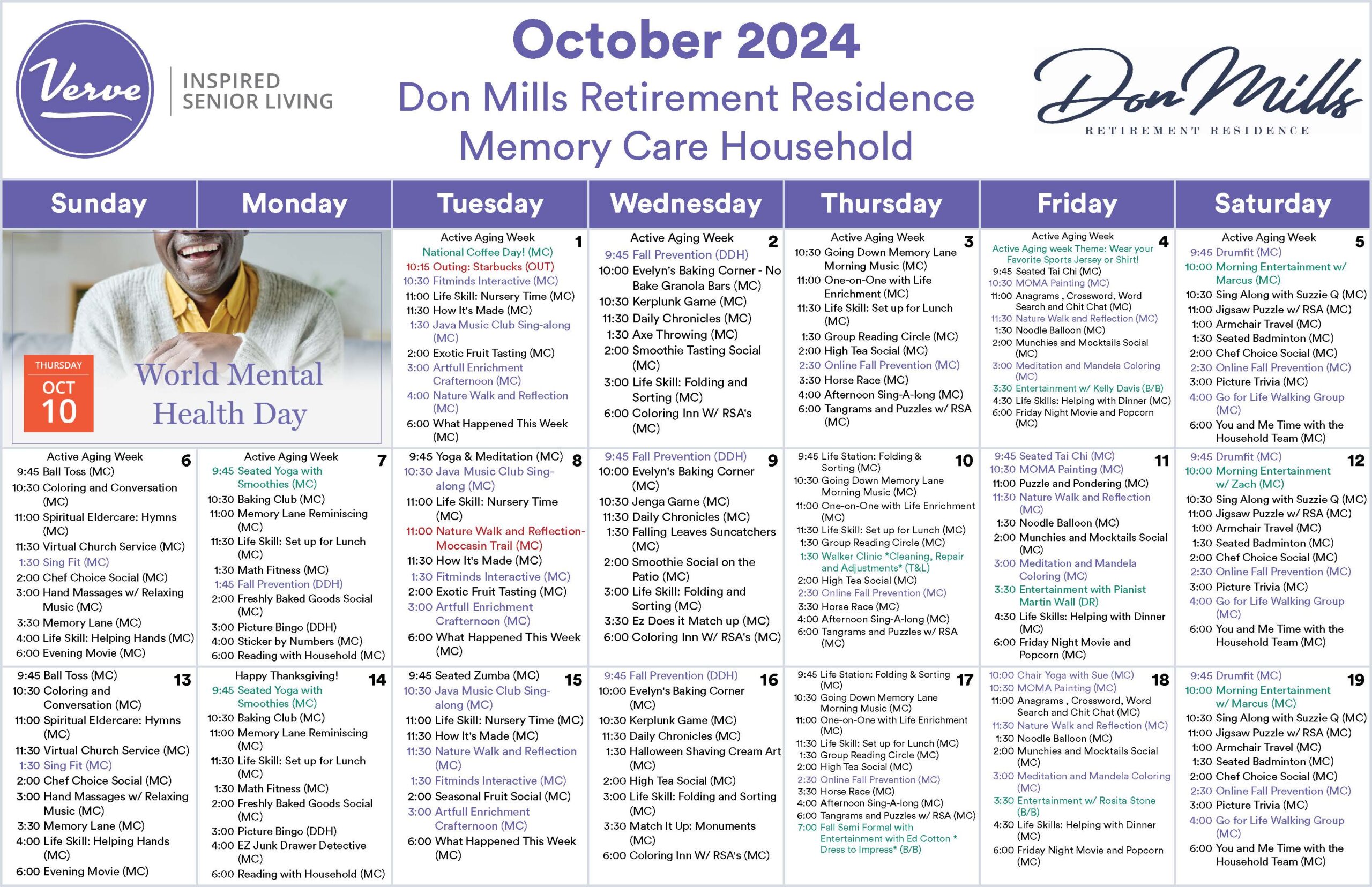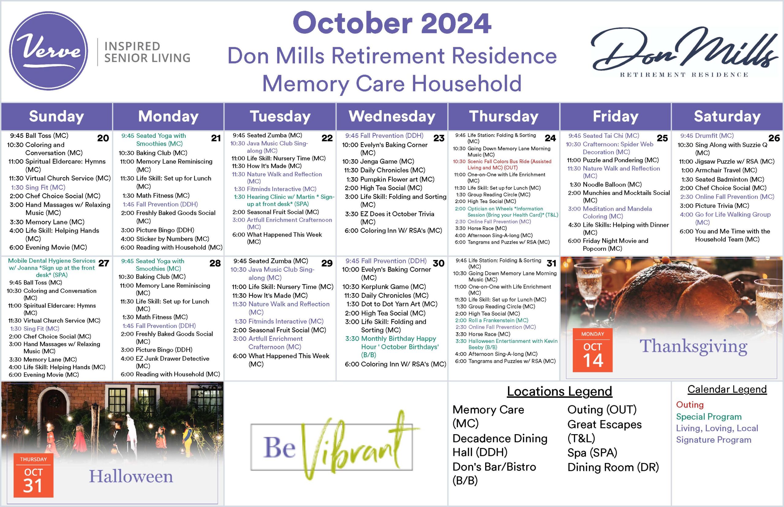 October 2024 – Monthly Memory Care Activity Calendar!