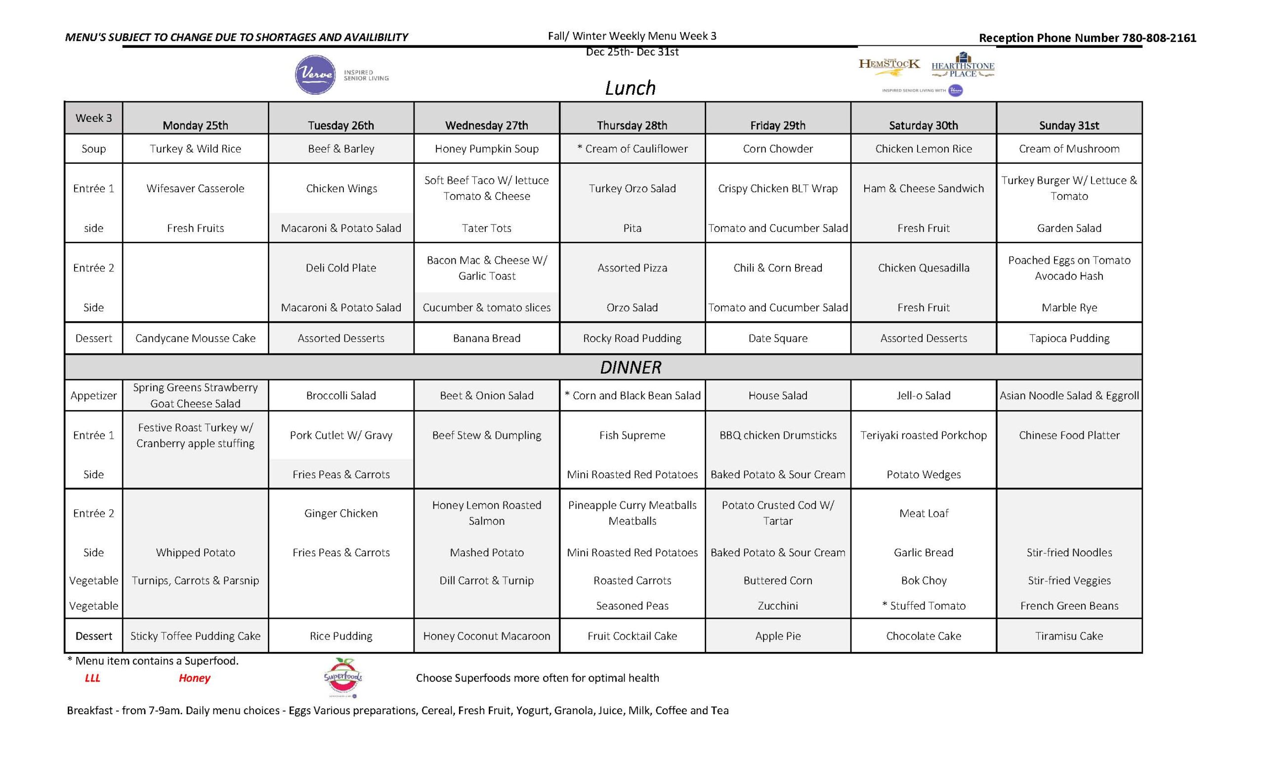 December 25th – 31st, 2023 – Weekly Menu!