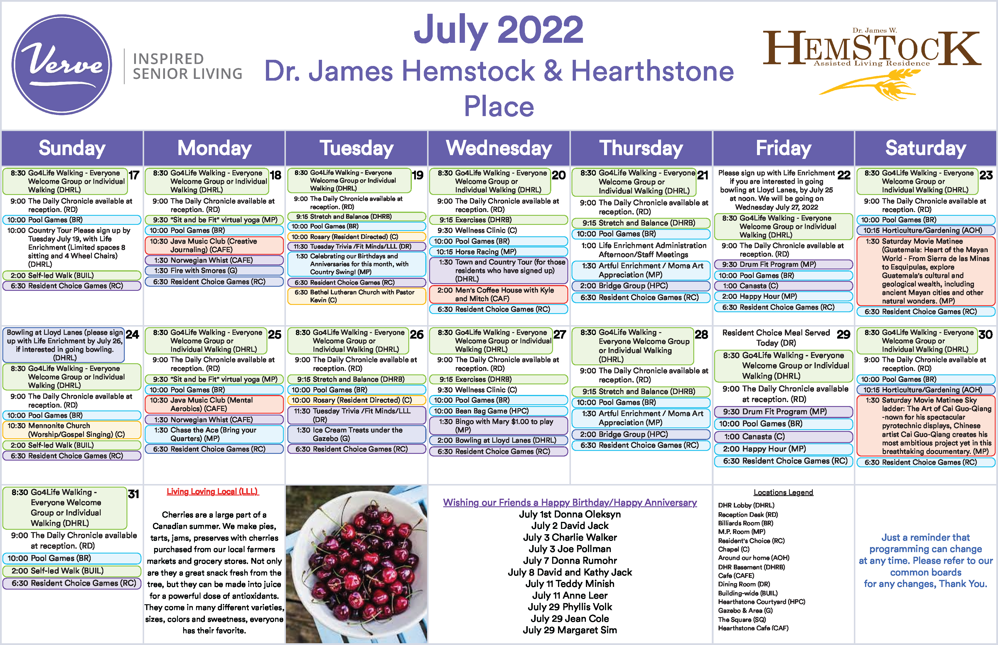 July 2022 Event Calendar