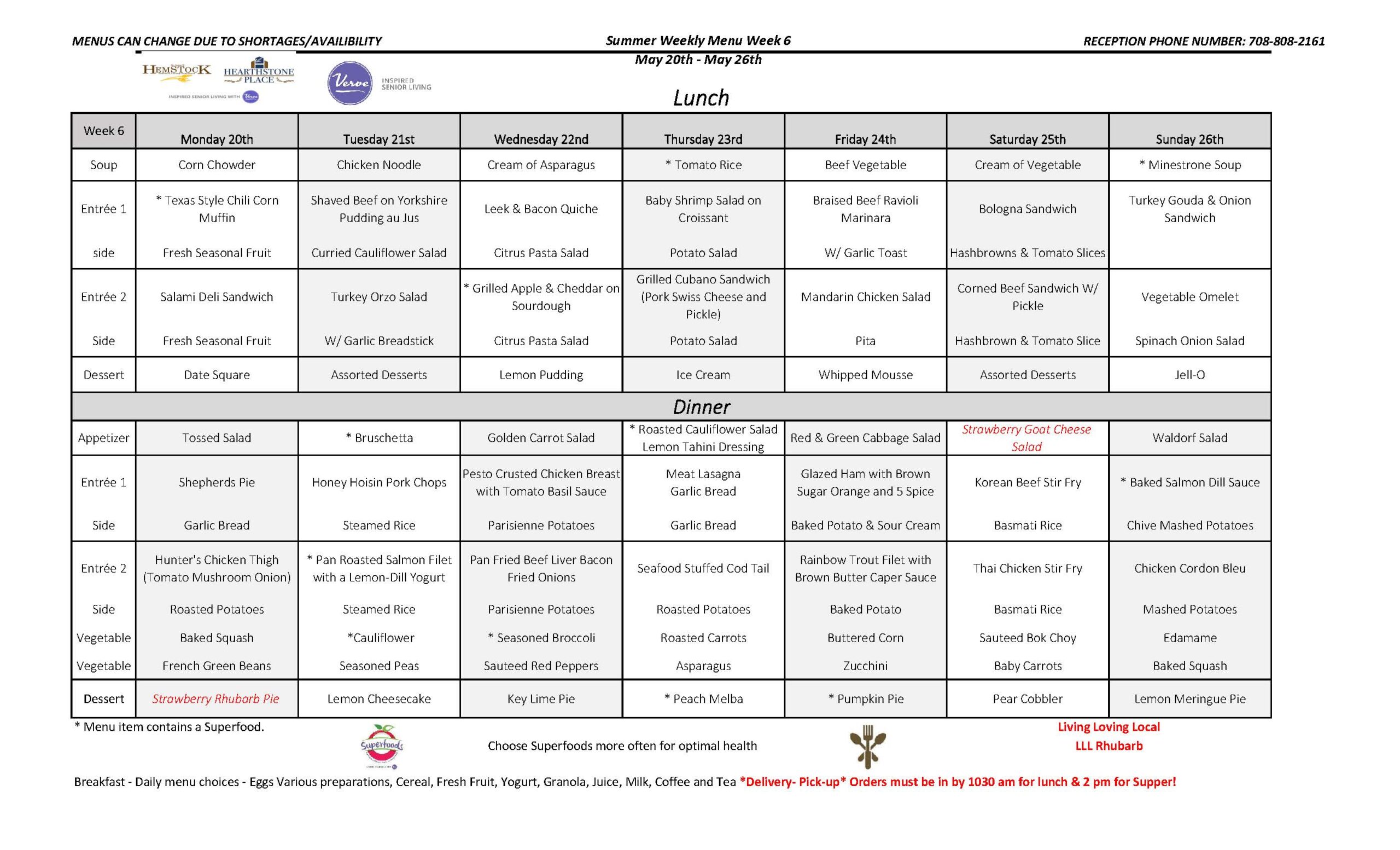May 20th – 26th, 2024 – Weekly Dining Menu!