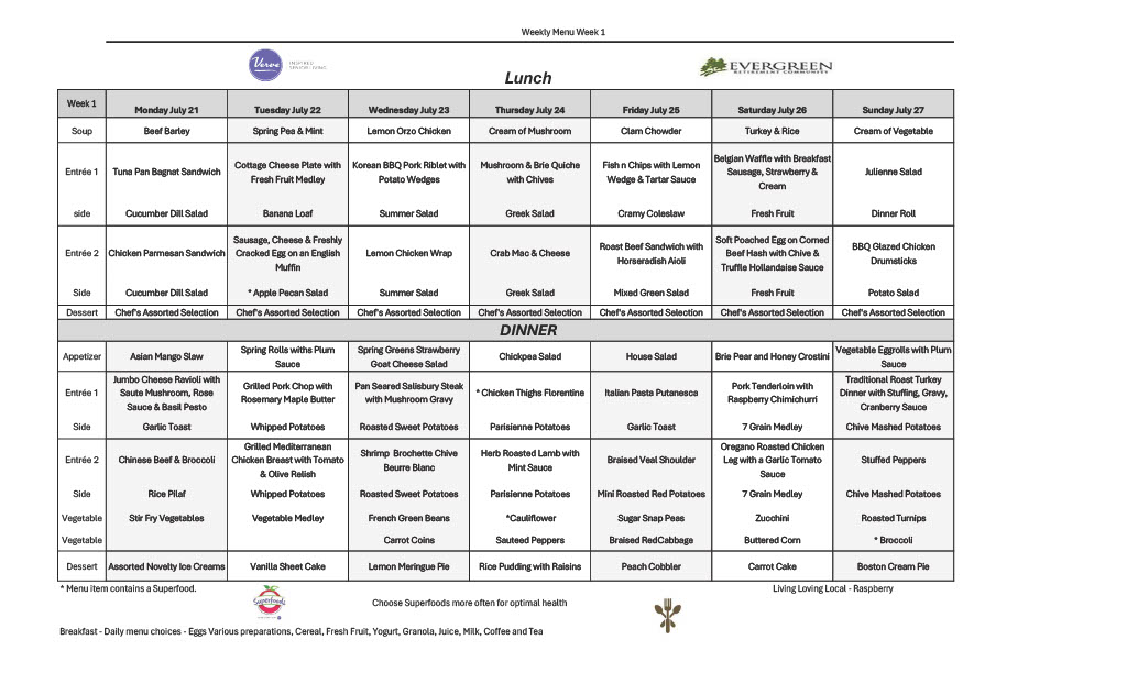 July 21st – 27th, 2025 – Weekly Dining Menu!