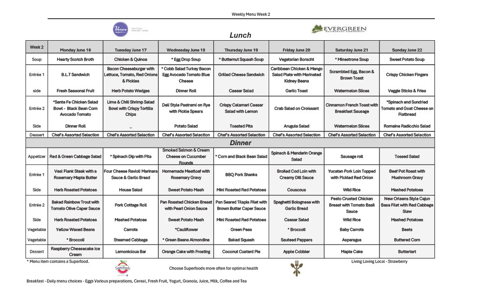 June 26th – 22nd, 2025 – Weekly Menu!