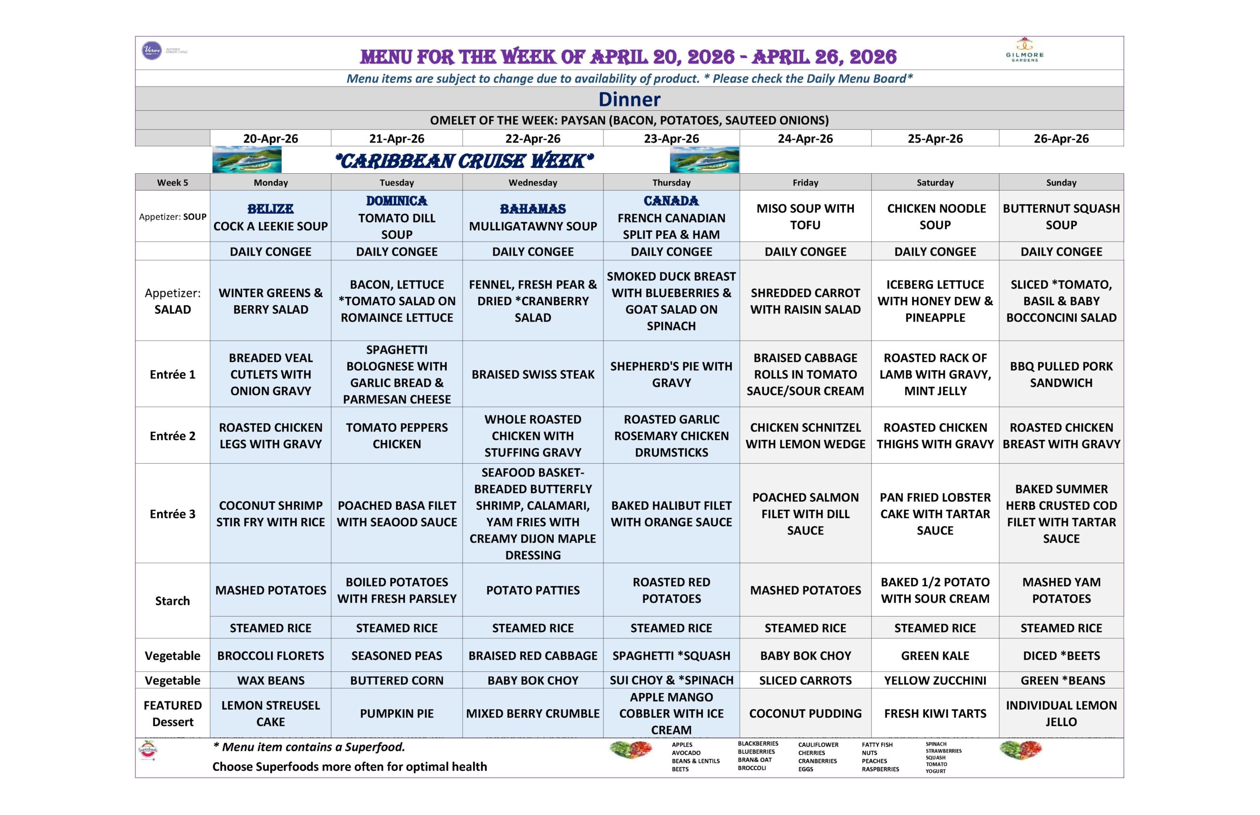April 20th to 26th, 2026 – Weekly Menu!