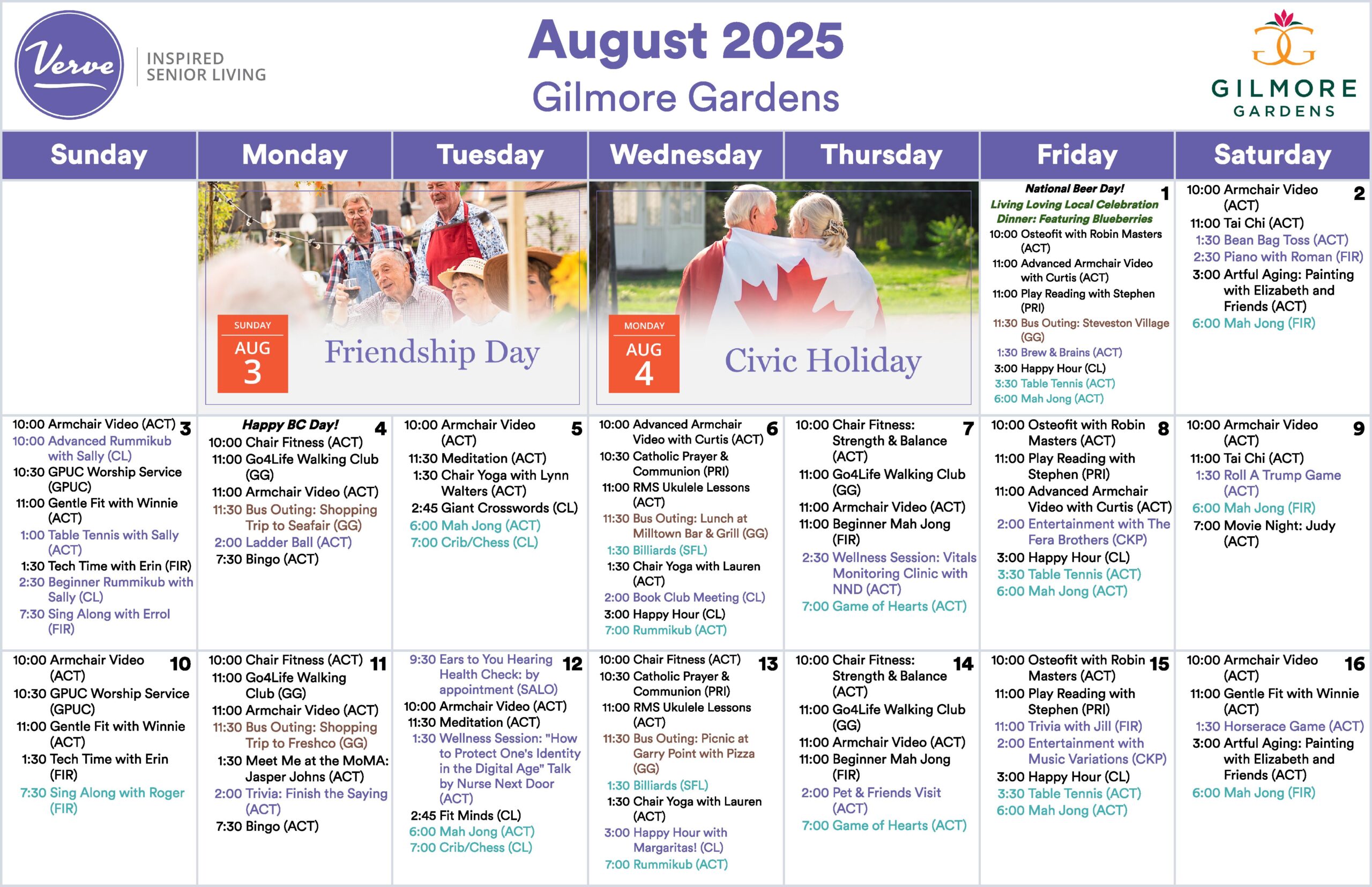 August 2025 – Monthly Activity Calendar