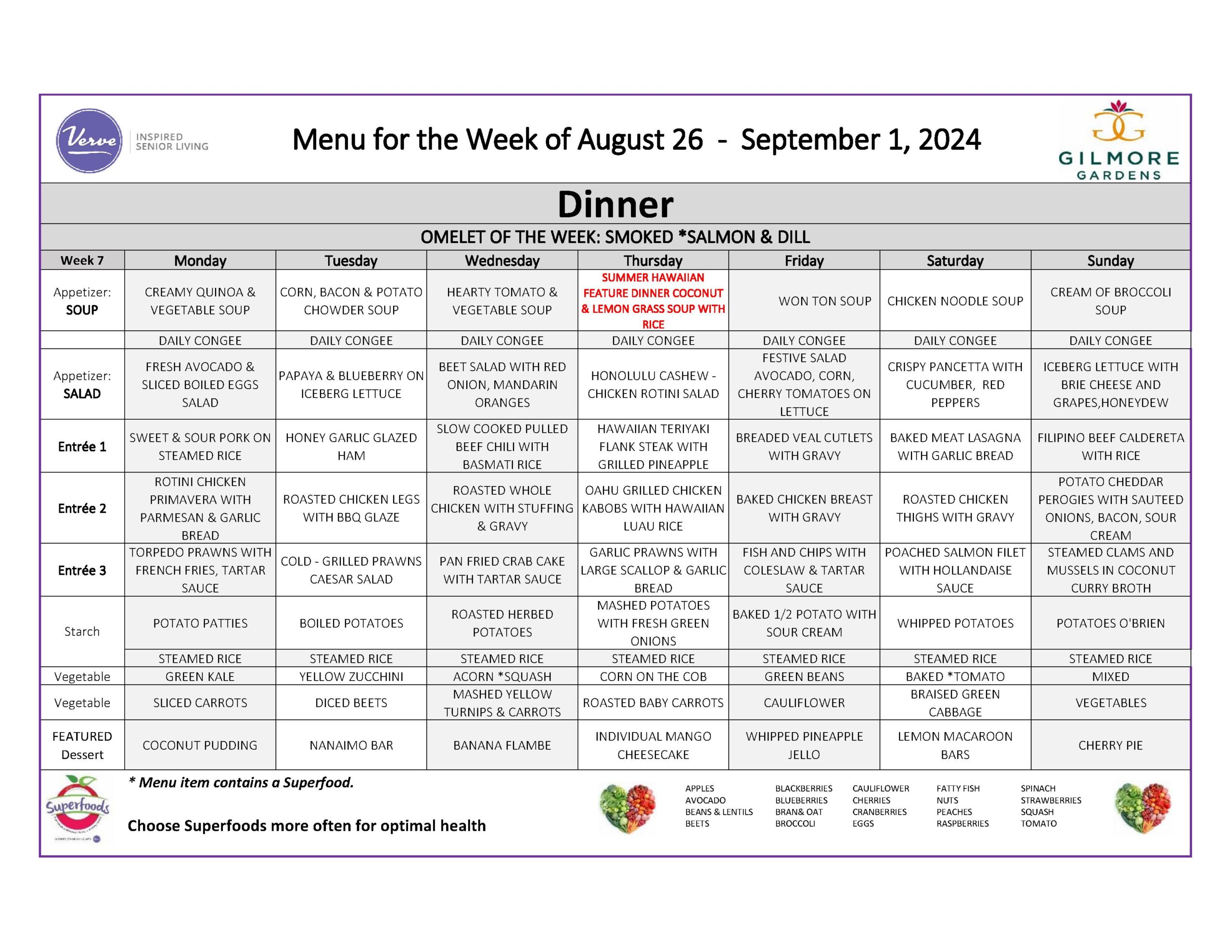 August 26th – September 1st, 2024 – Weekly Dining Menu!