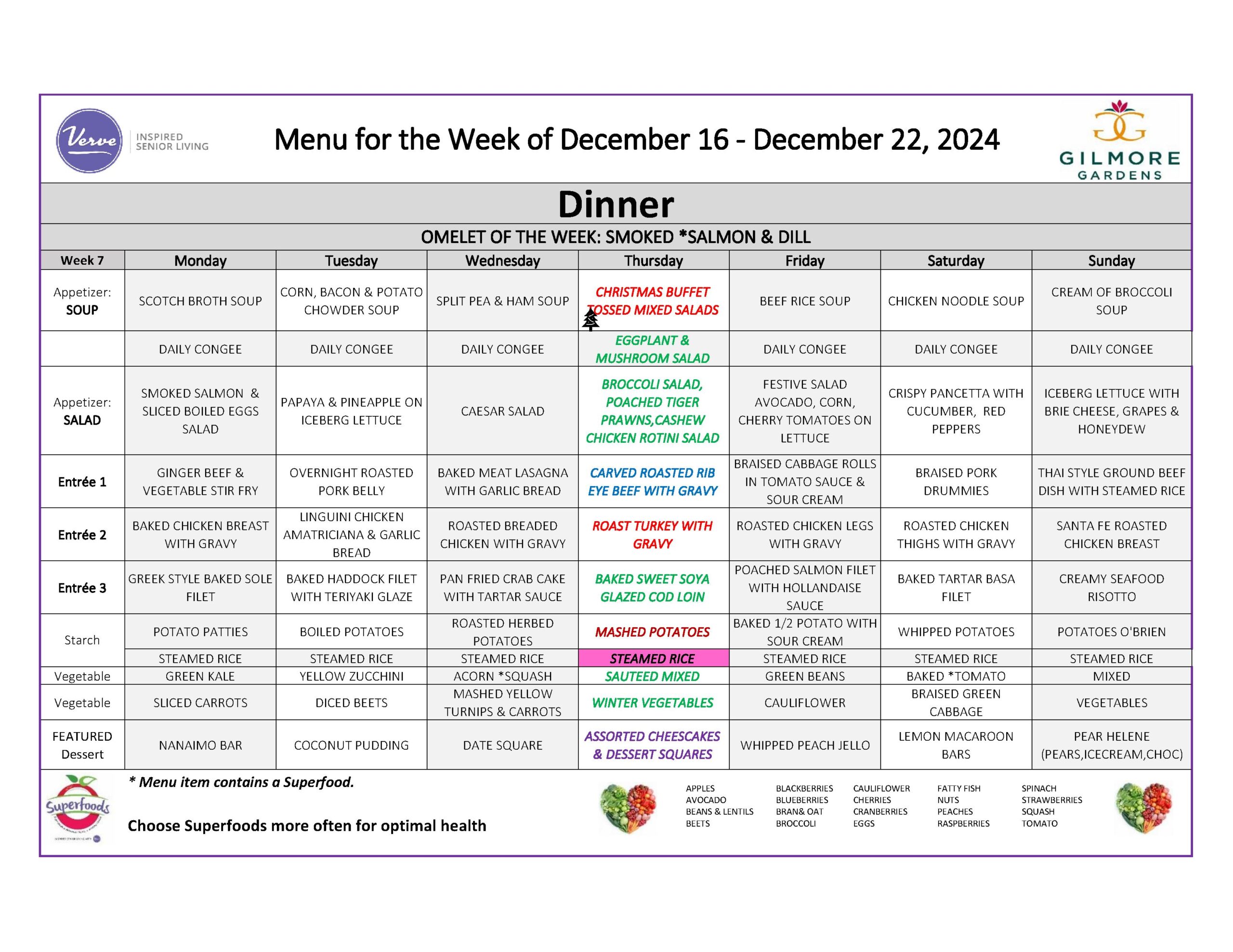 December 16th – 22nd, 2024 – Weekly Dining Menu!