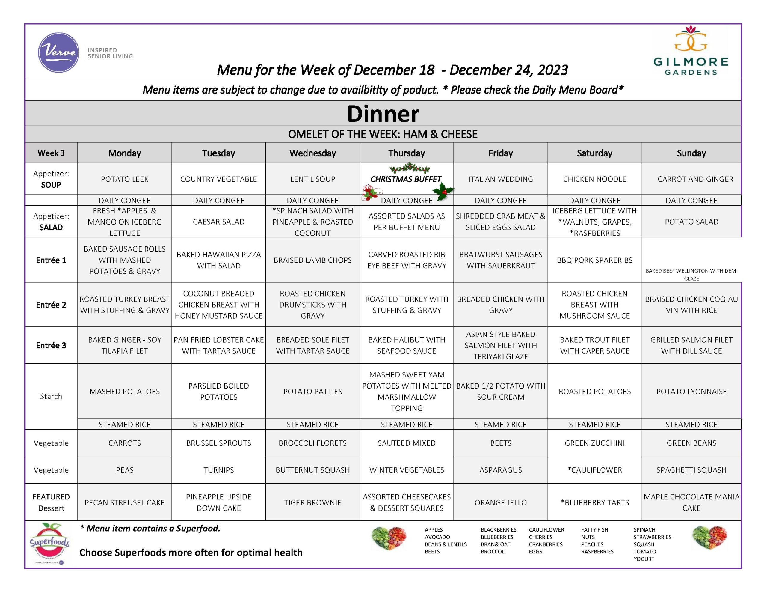 December 18th-24th, 2023 – Weekly Menu!
