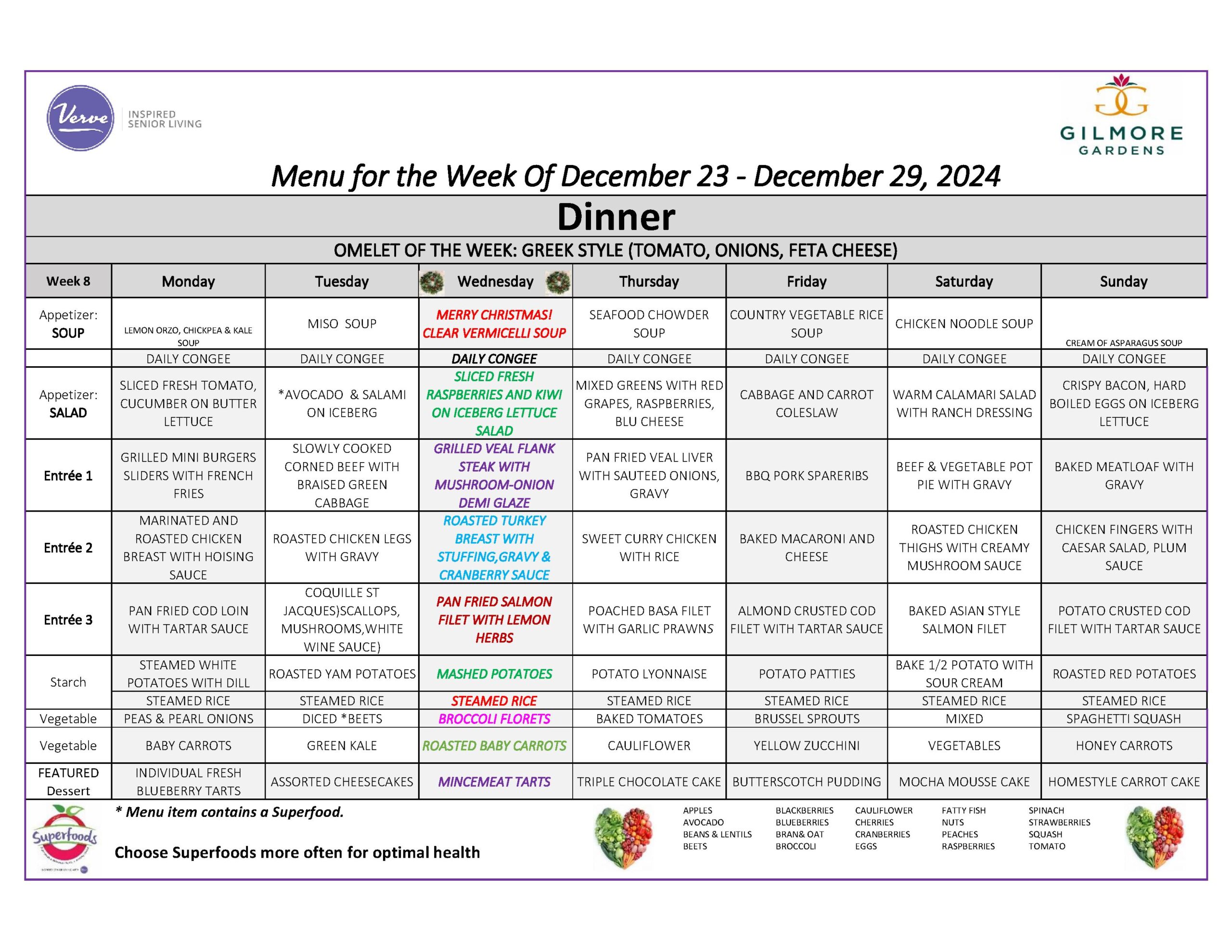 December 23th – 29th, 2024 – Weekly Dining Menu!