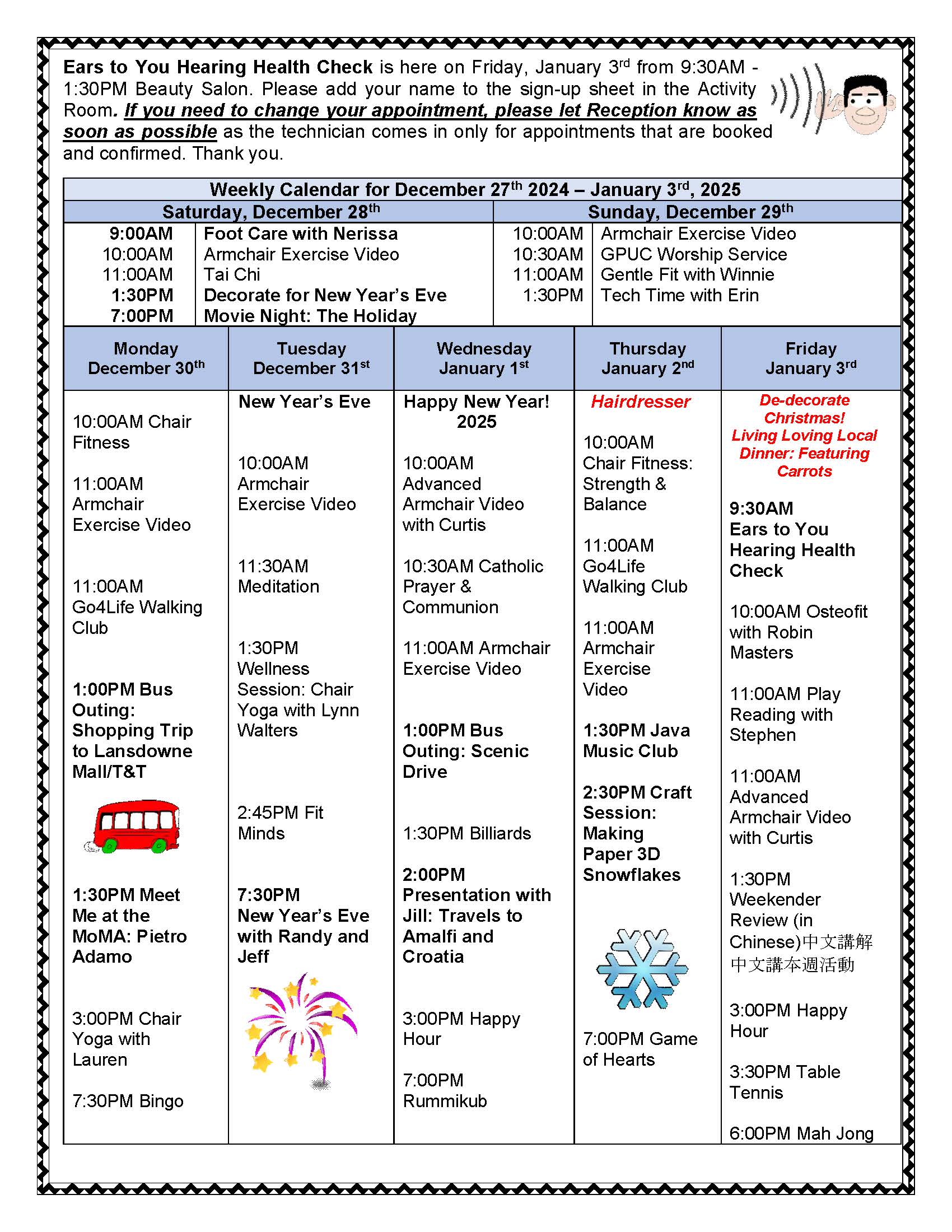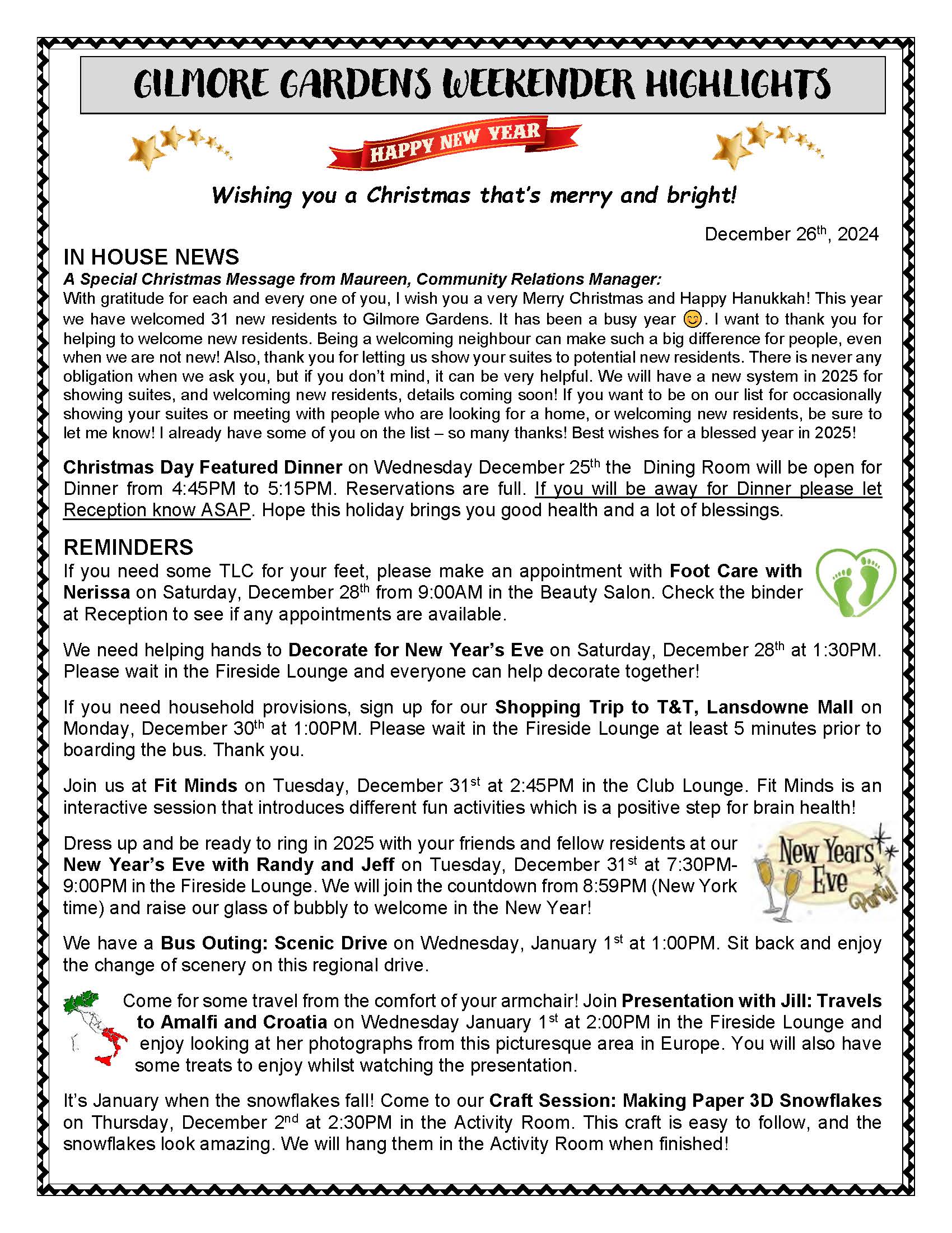 December 27th, 2024 to Jan 3rd, 2025 – Weekender Highlights!