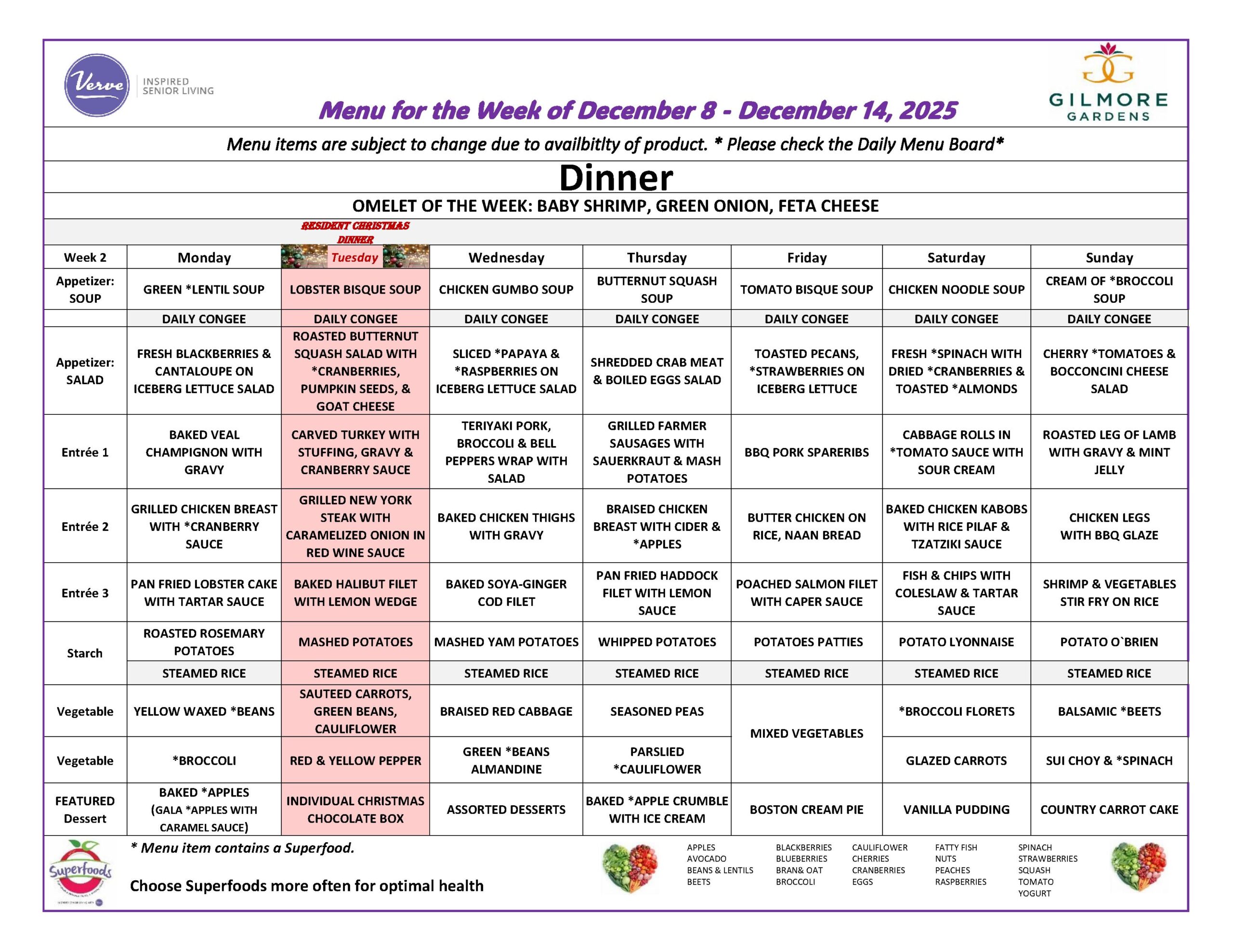 December 8th – 14th, 2025 – Weekly Menu!