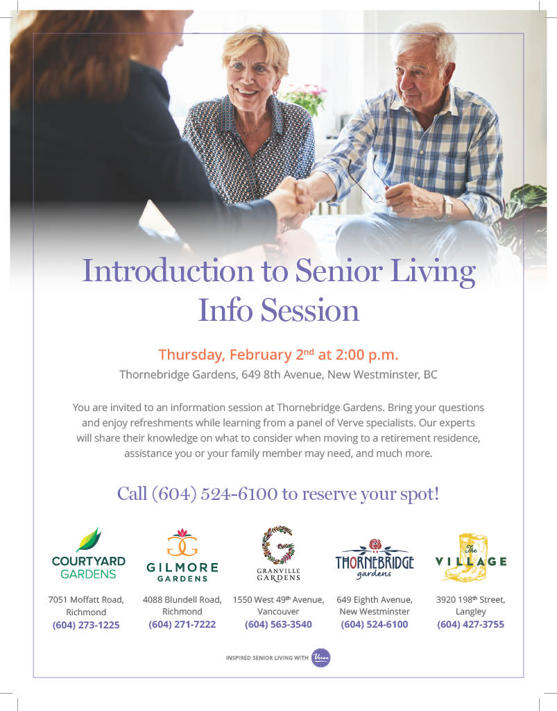 Join us for our Introduction to Senior Living Info Session on Thursday, February 2nd at 2:00pm.