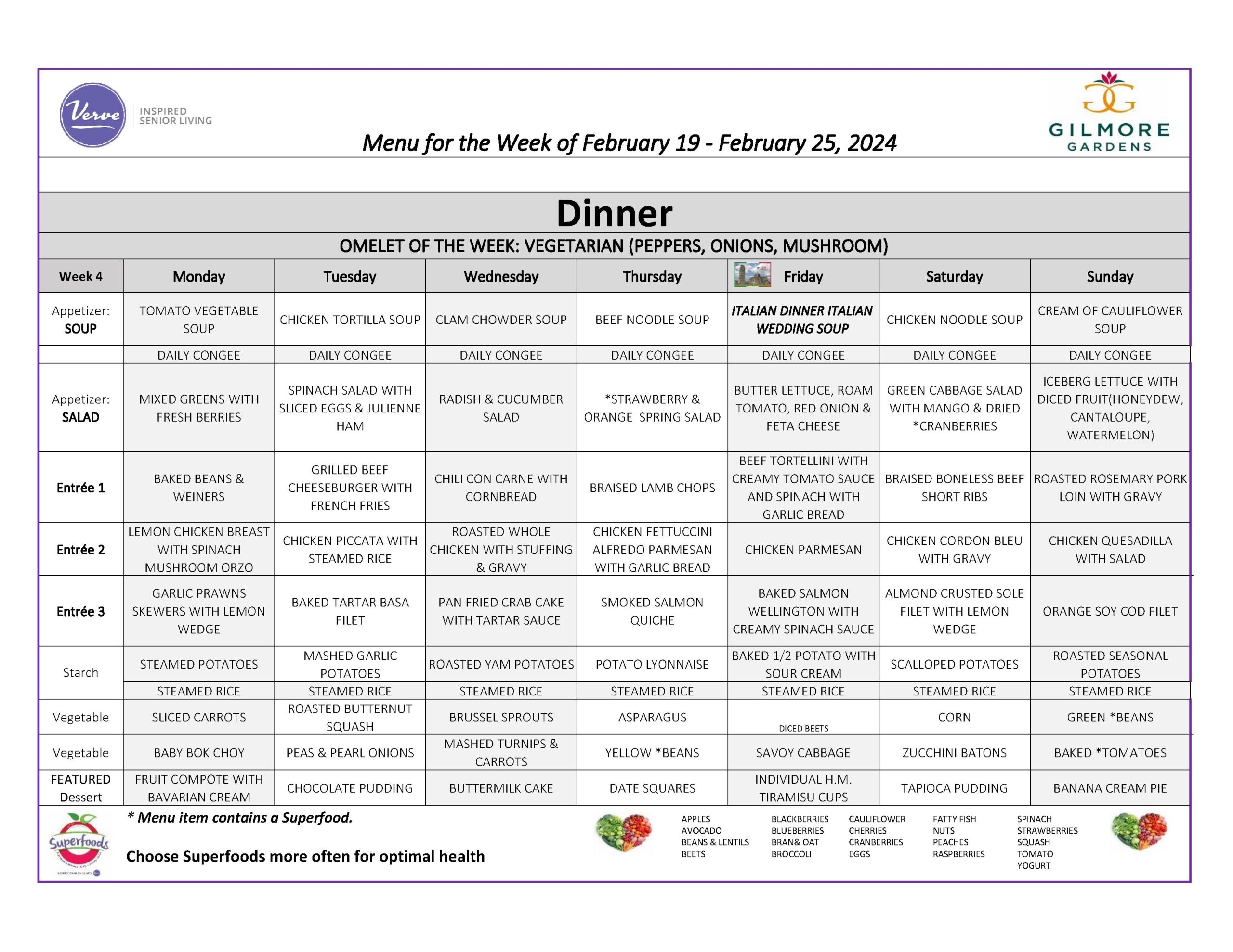 February 19th – 25th, 2024 – Weekly Dining Menu!