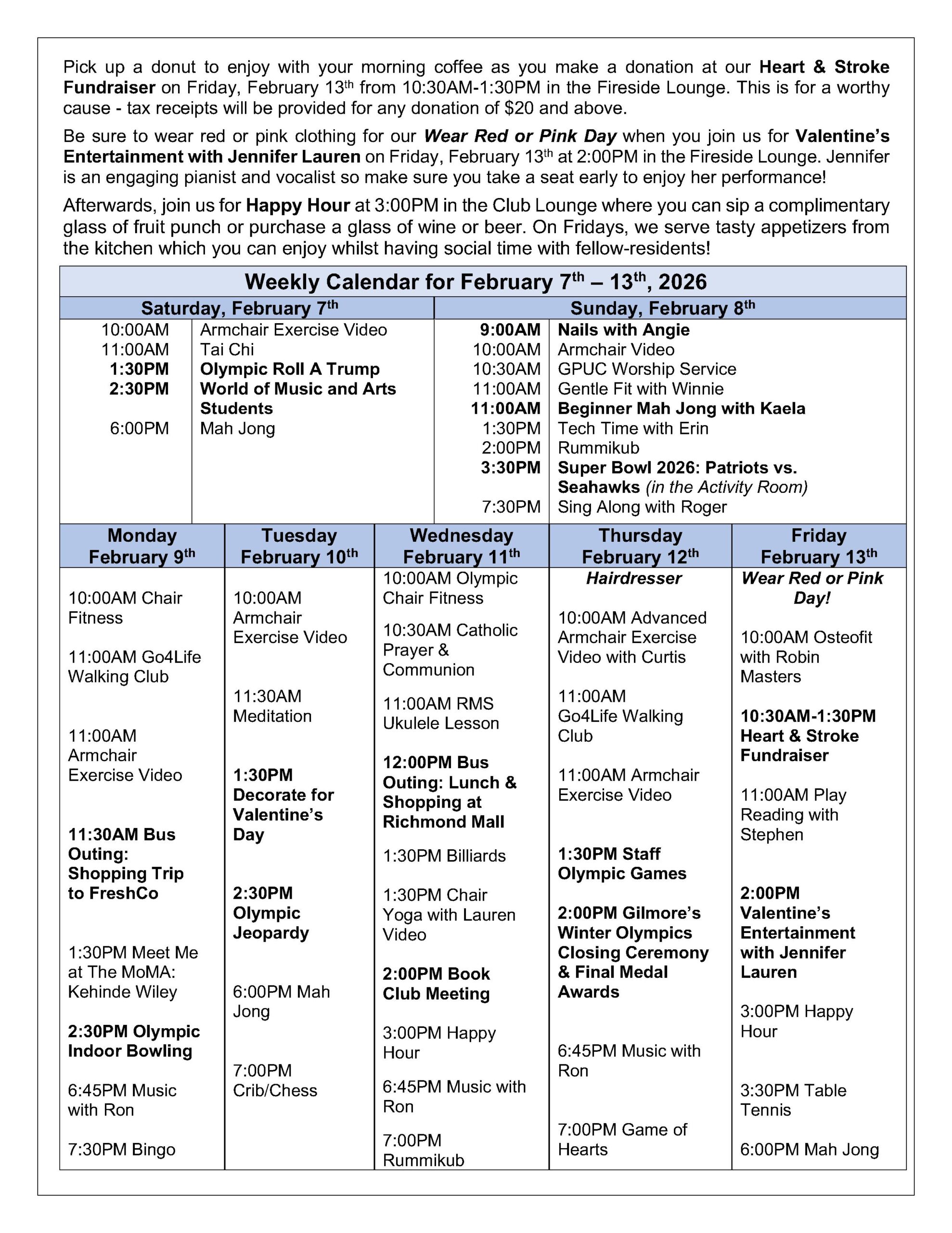February 7th to 13th, 2026 – Weekly Activity Calendar!