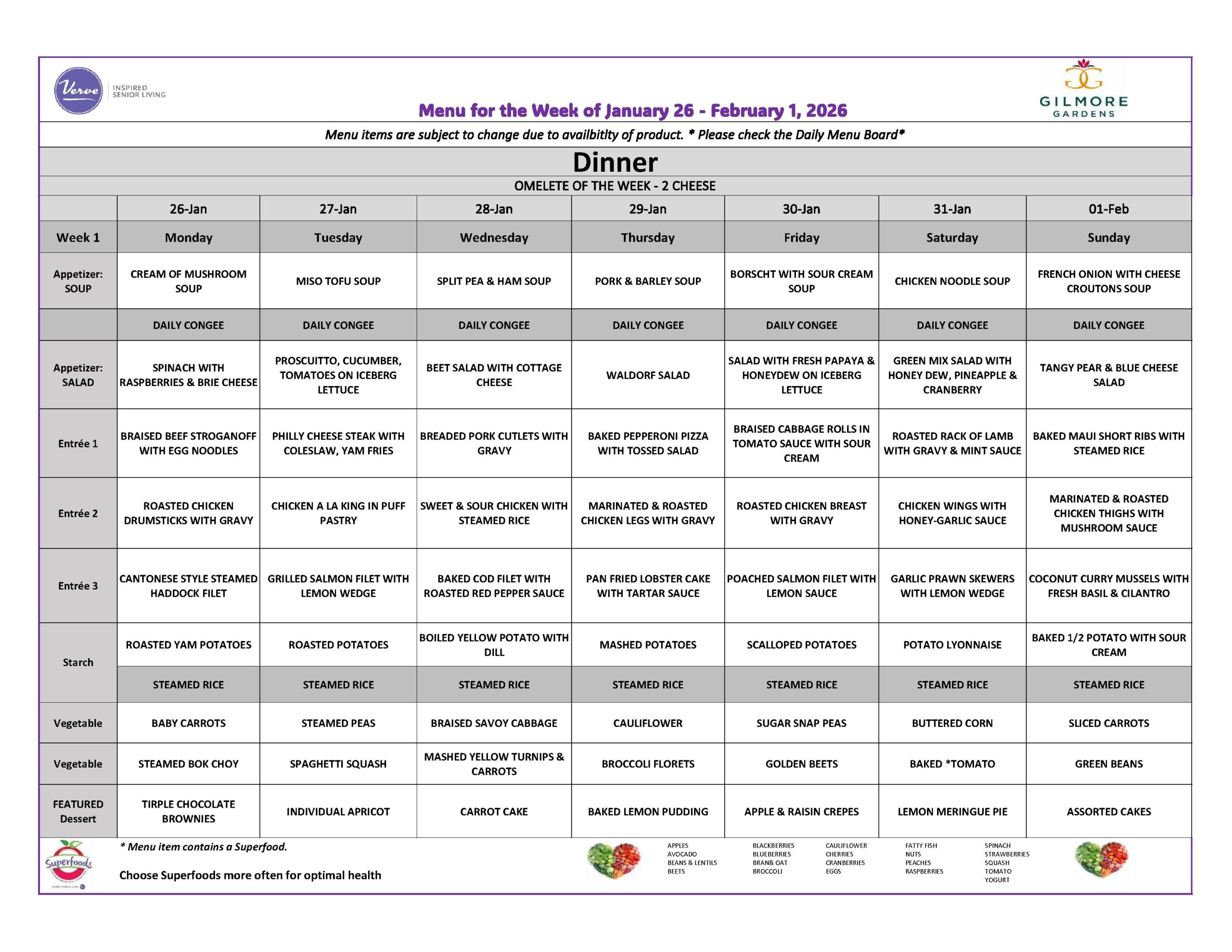 January 26th to February 1st, 2026 – Weekly Menu