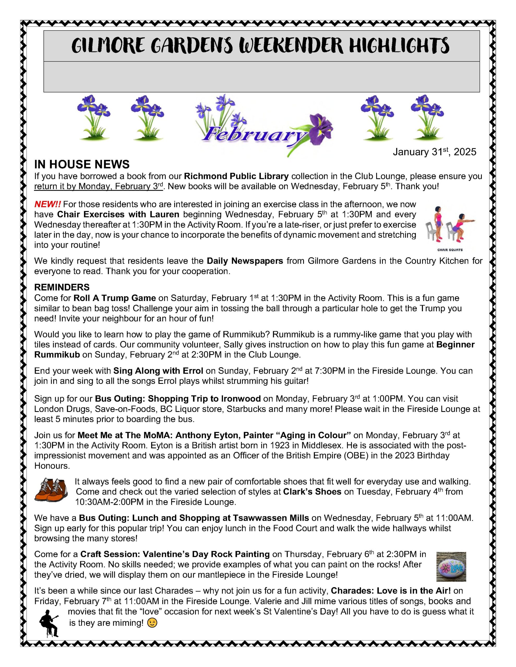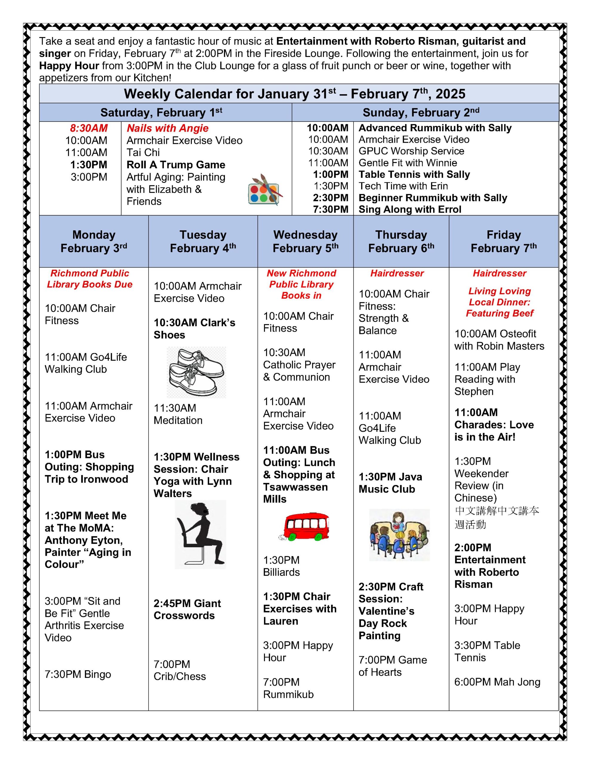 January 31st – February 7th, 2025 – Weekly Activity Calendar!