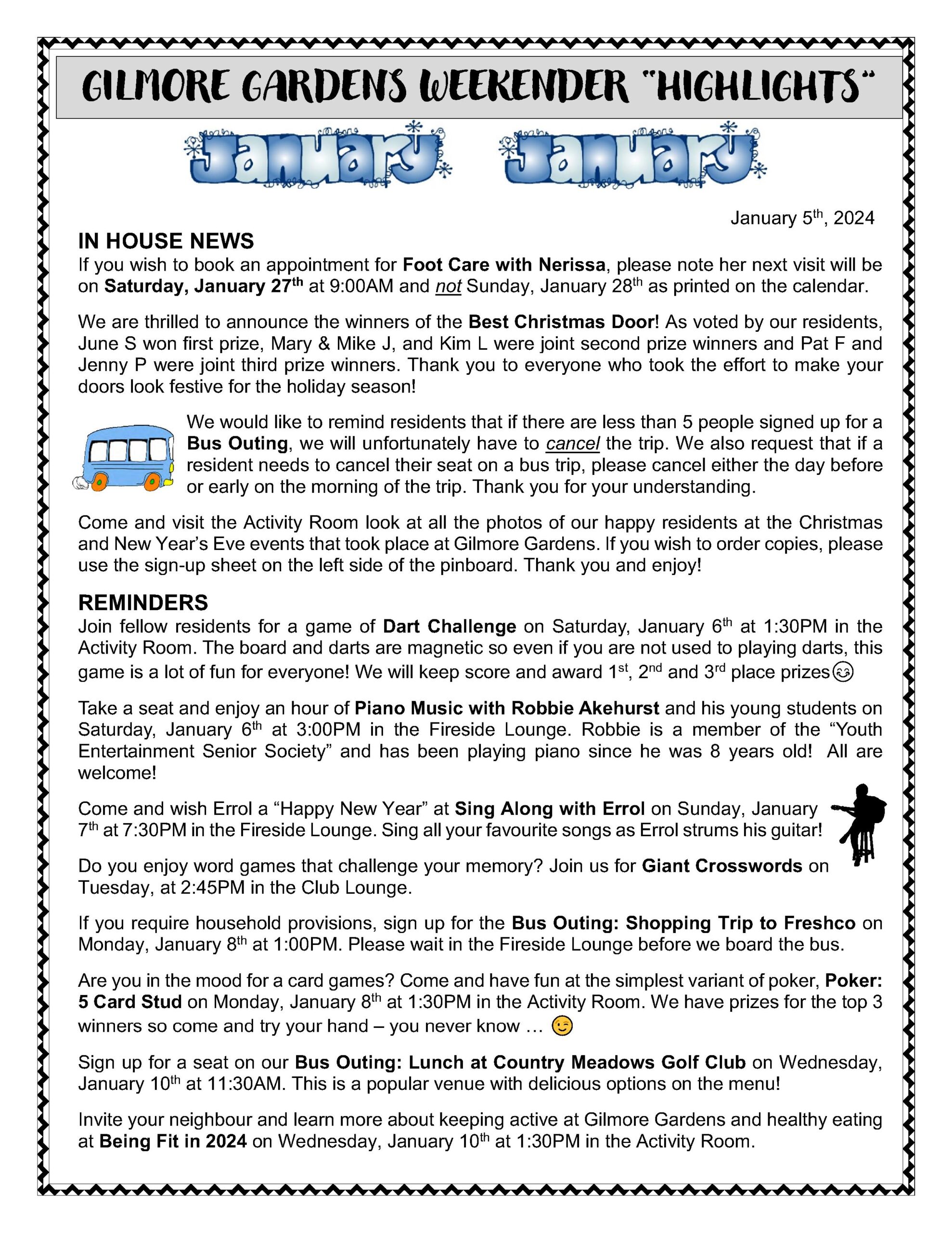 January 5th – 12th, 2024 – Weekender Highlights!