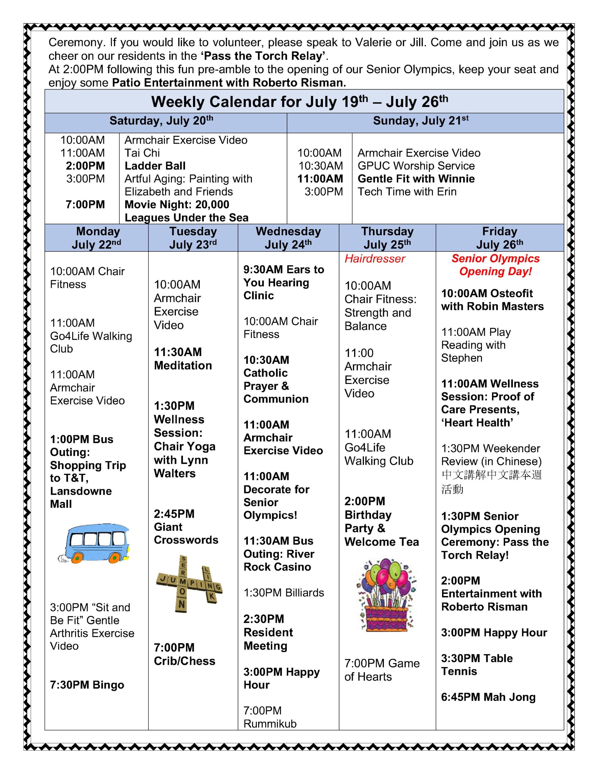 July 19th – 26th, 2024 – Weekender Highlights!