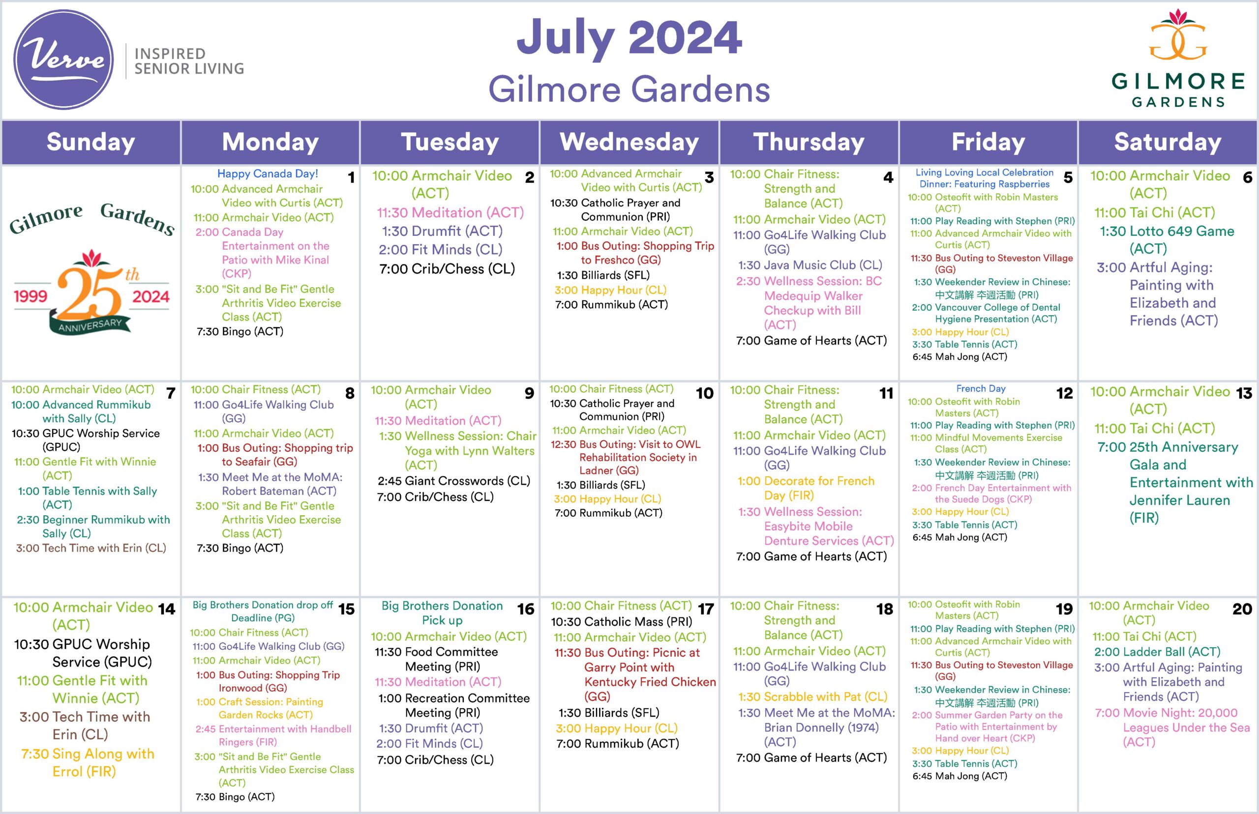 July 2024 – Monthly Activity Calendar
