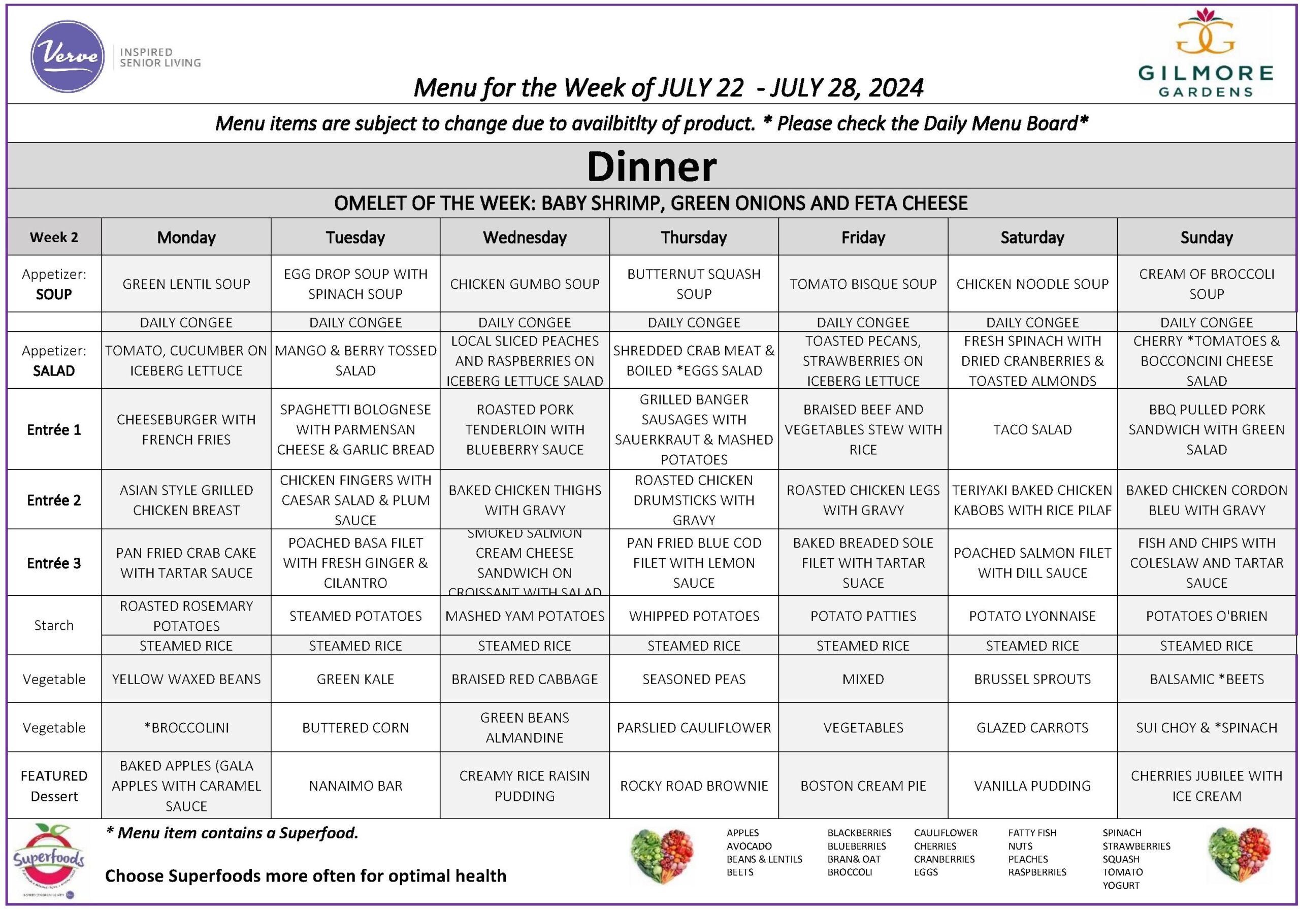 July 22nd – 28th, 2024 – Weekly Dining Menu!