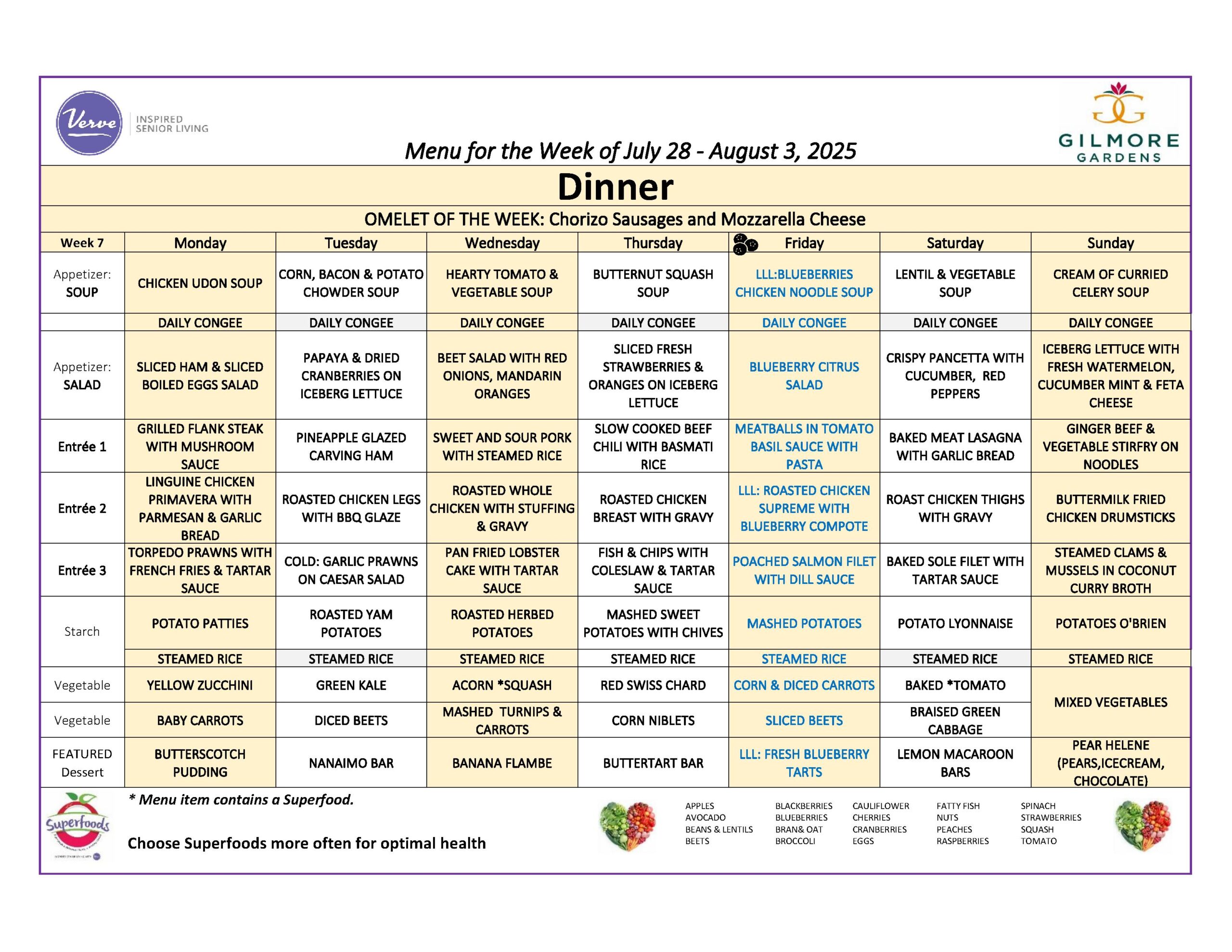 July 28th – August 3rd 2025 – Weekly Dining Menu!
