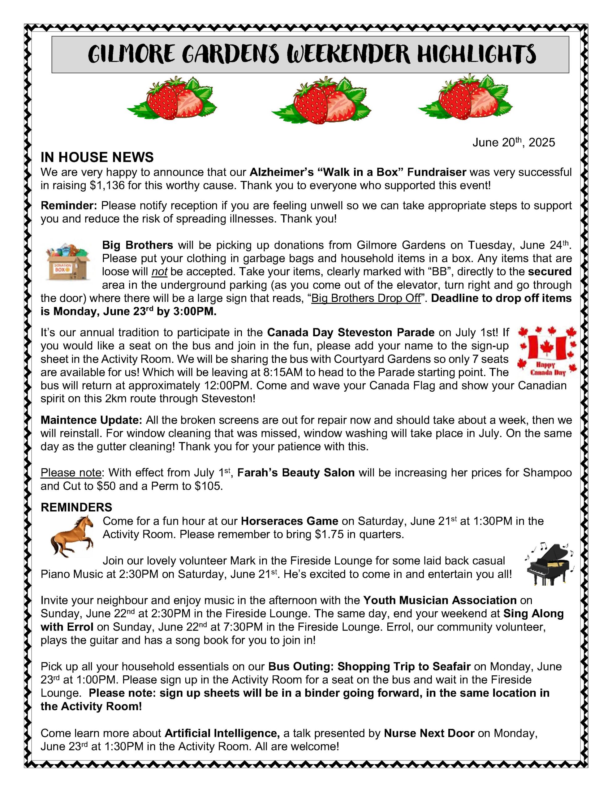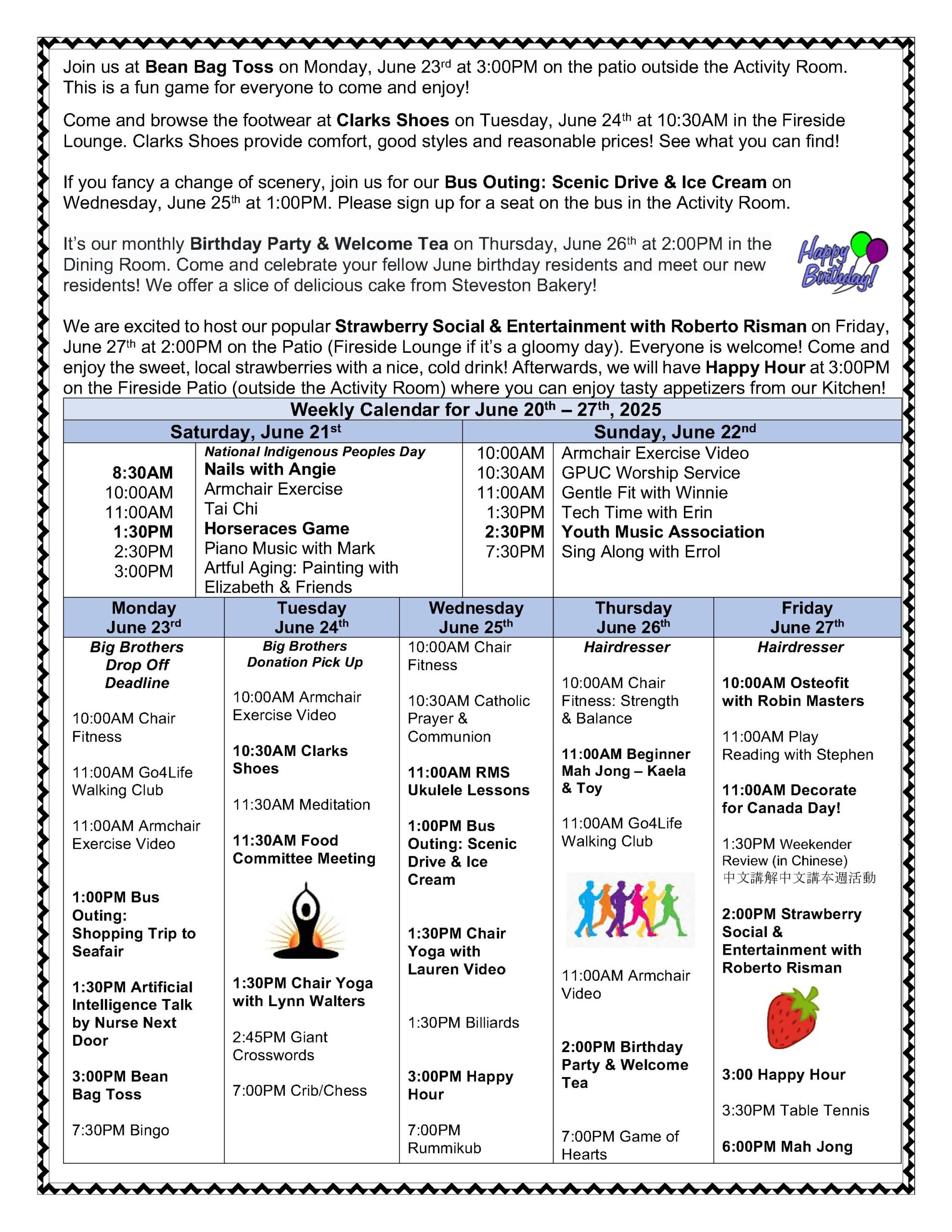 June 20th – 27th, 2025 – Weekly Activity Calendar!