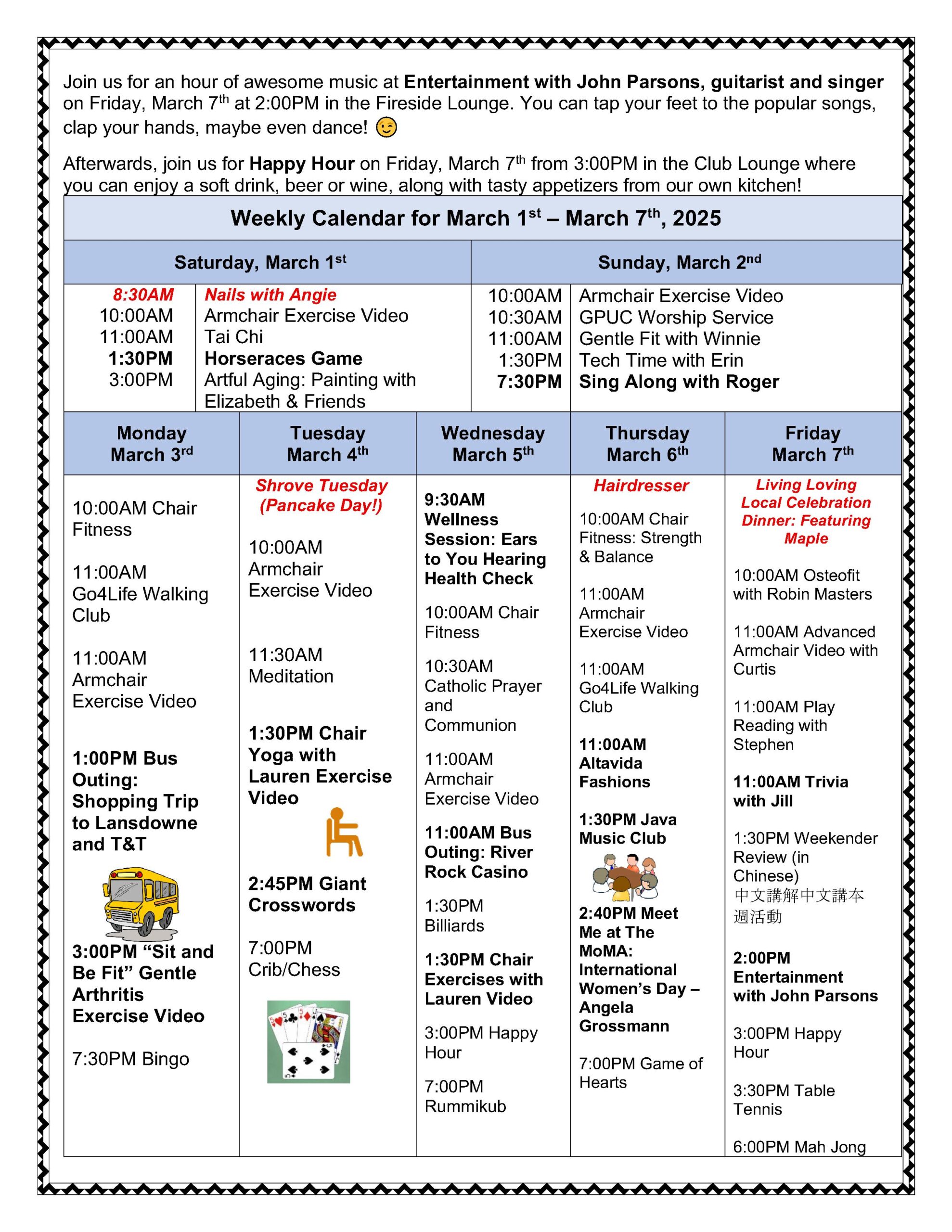 March 2025 – Weekly Calendar for Mar 1 – 7