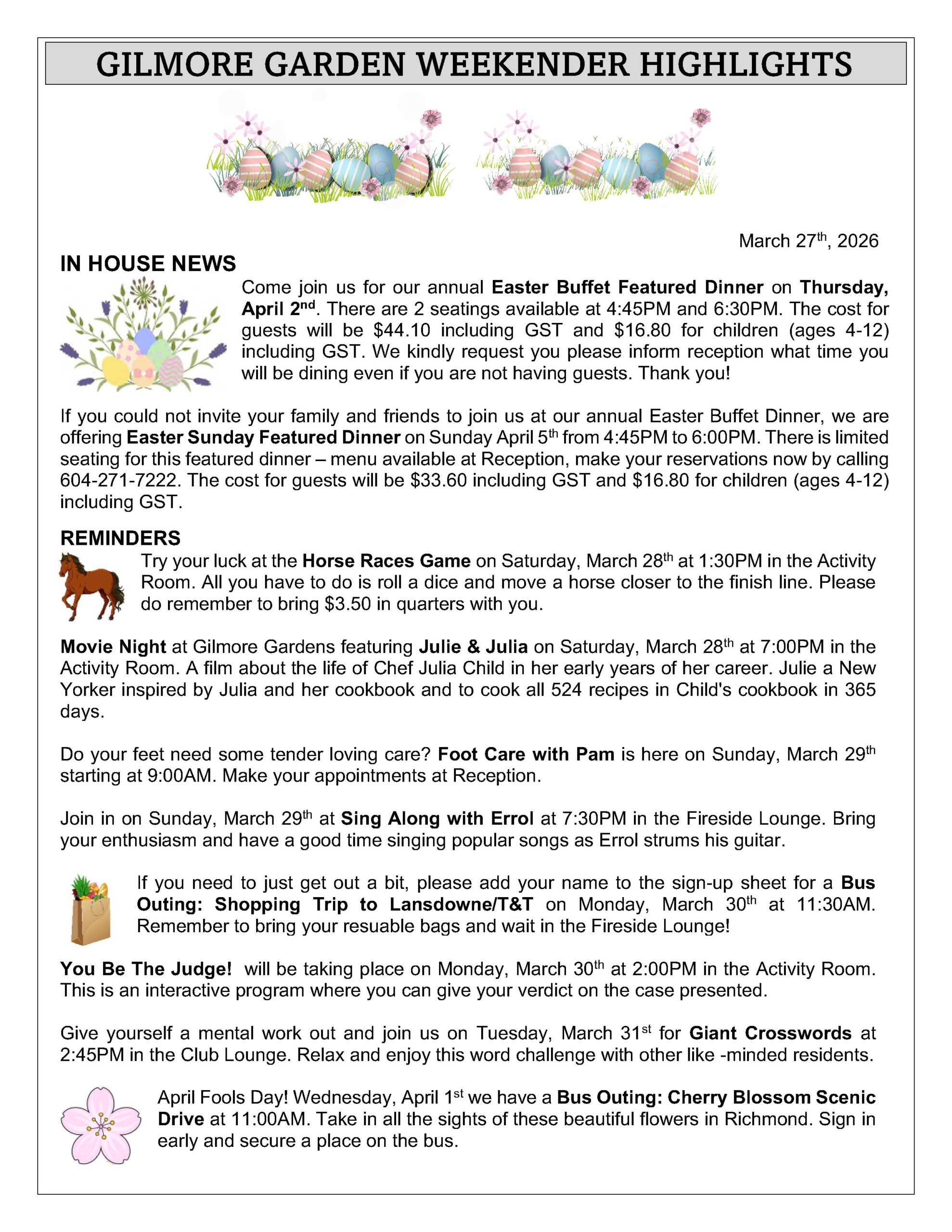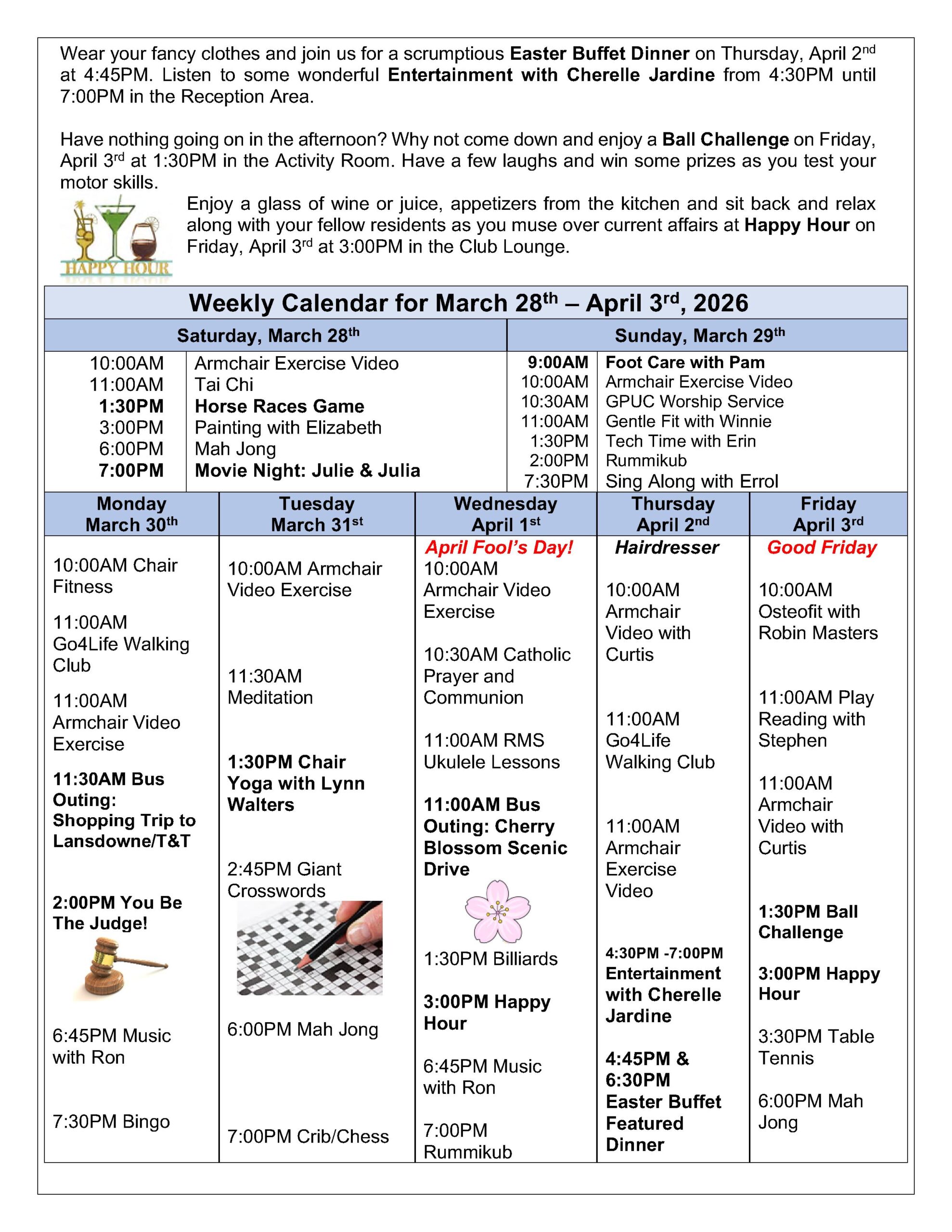 March 28th to April 3rd, 2026 – Weekly Activity Calendar!