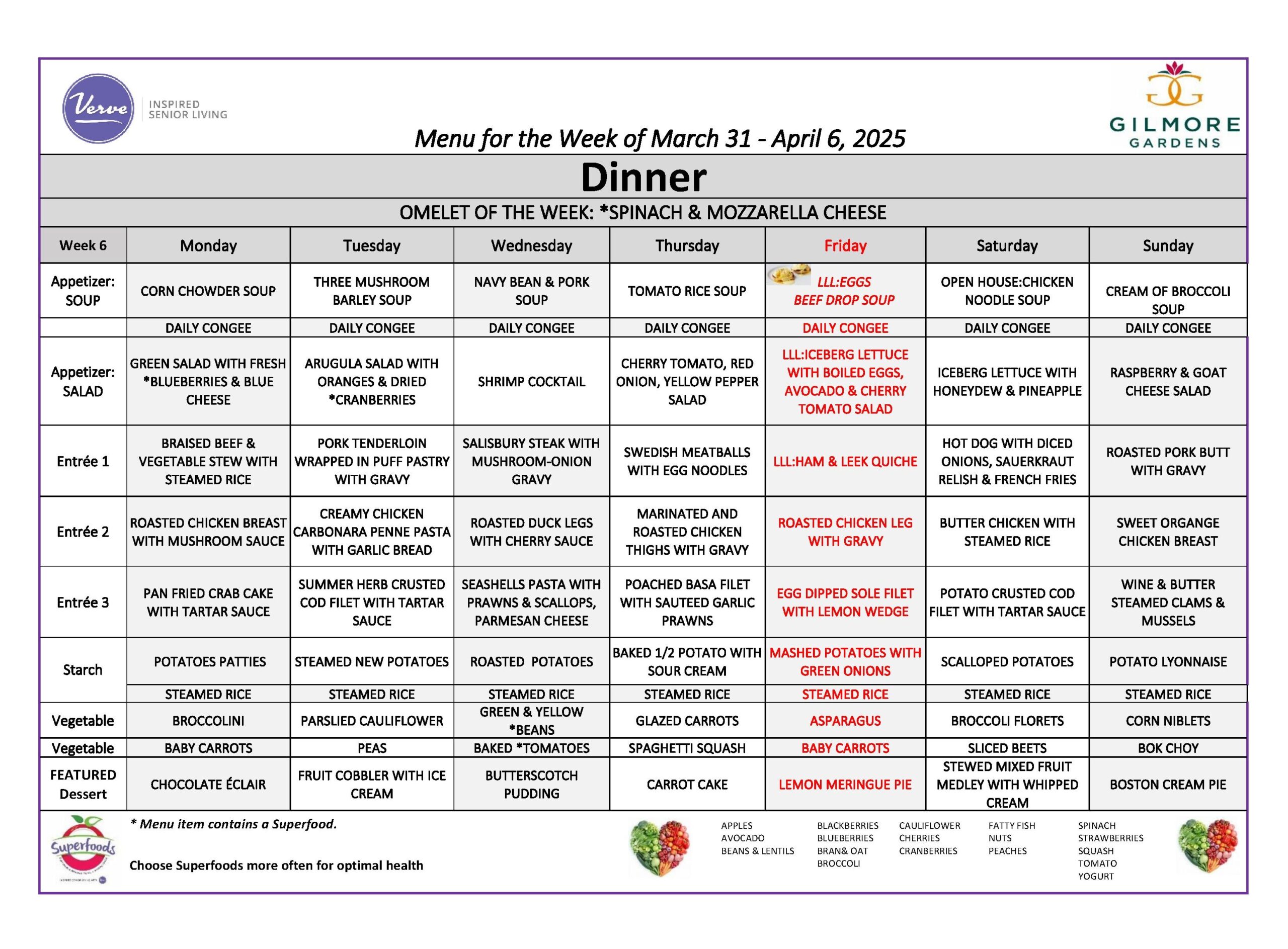 March & April 2025 – Weekly Menu for Mar 31 – Apr 6