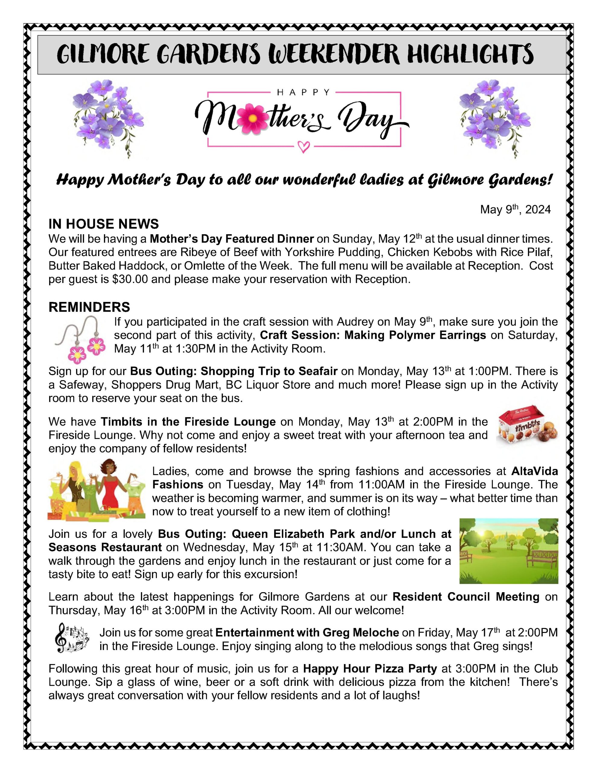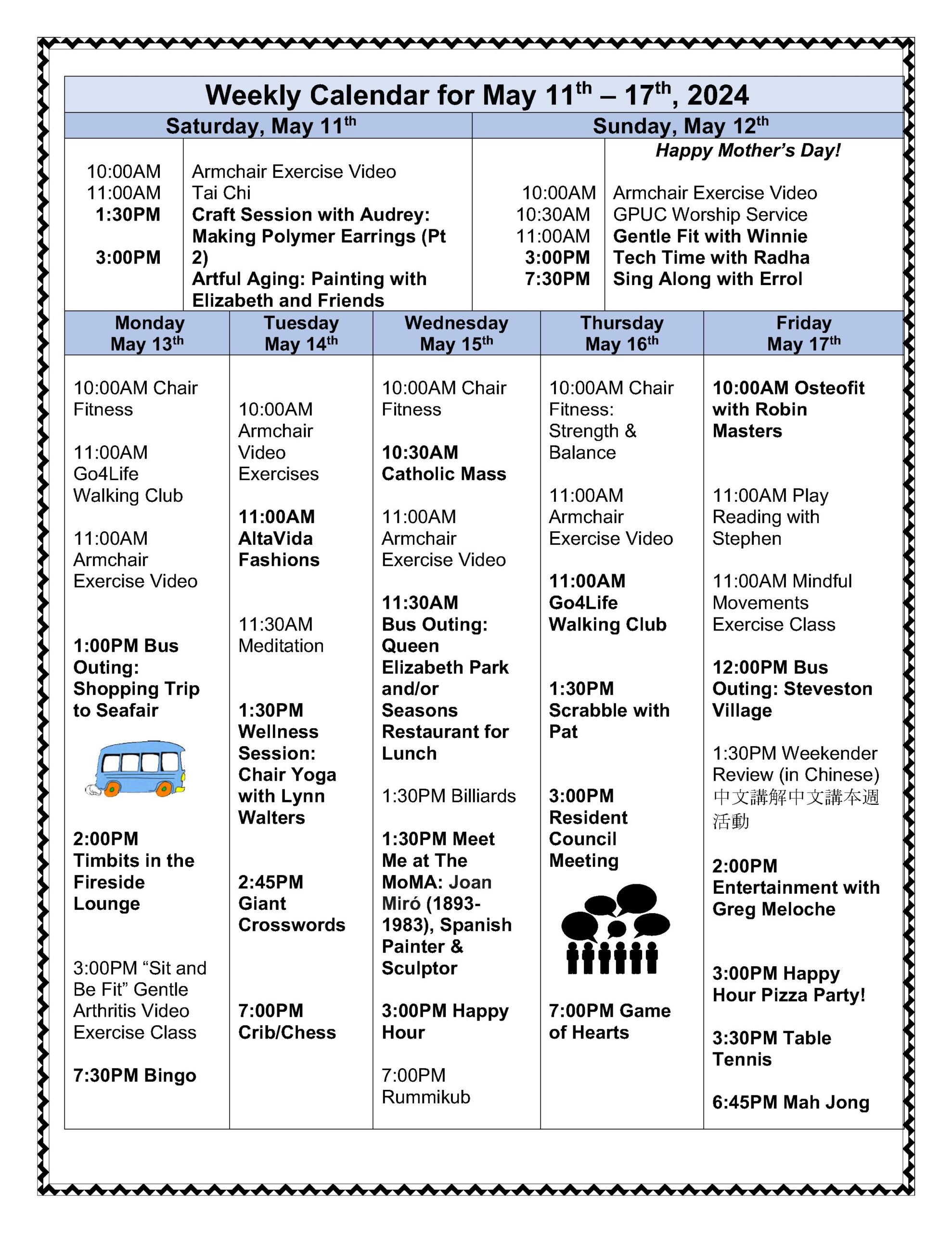 May 11th – 17th, 2024 – Weekly Activity Calendar!