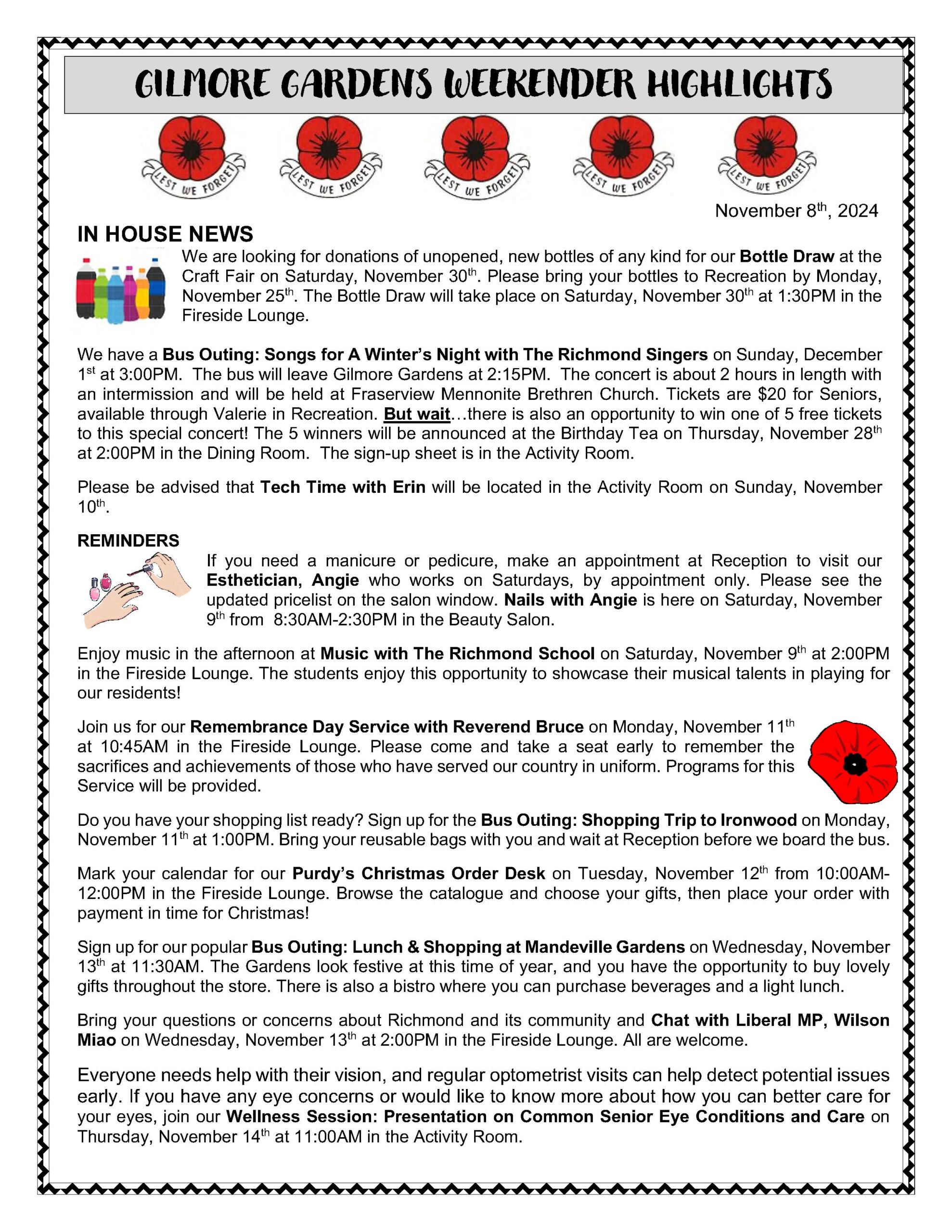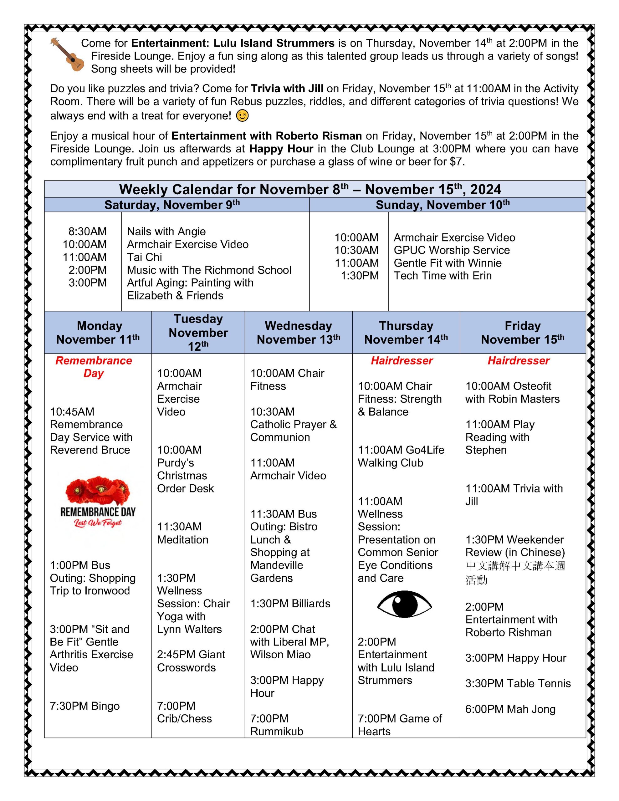 November 8th – 15th, 2024 – Weekly Activity Calendar!