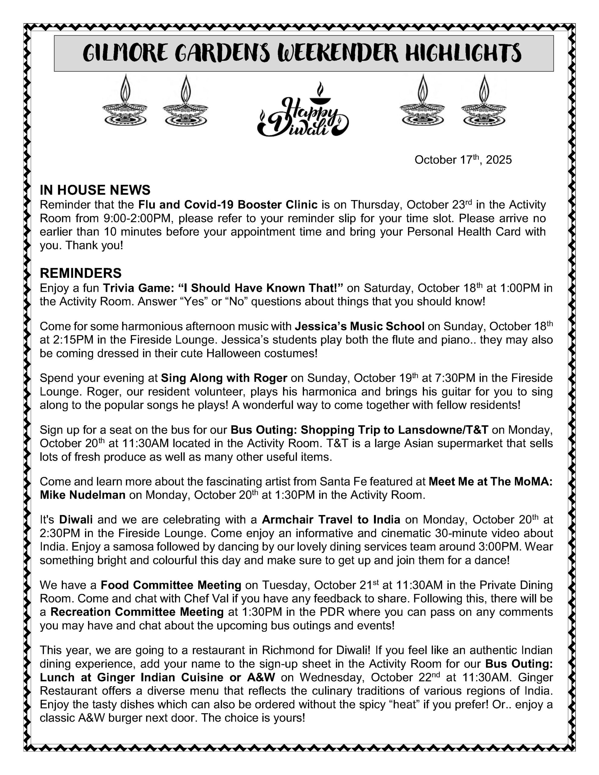 October 18th – 24th, 2025 – Weekly Activity Calendar!