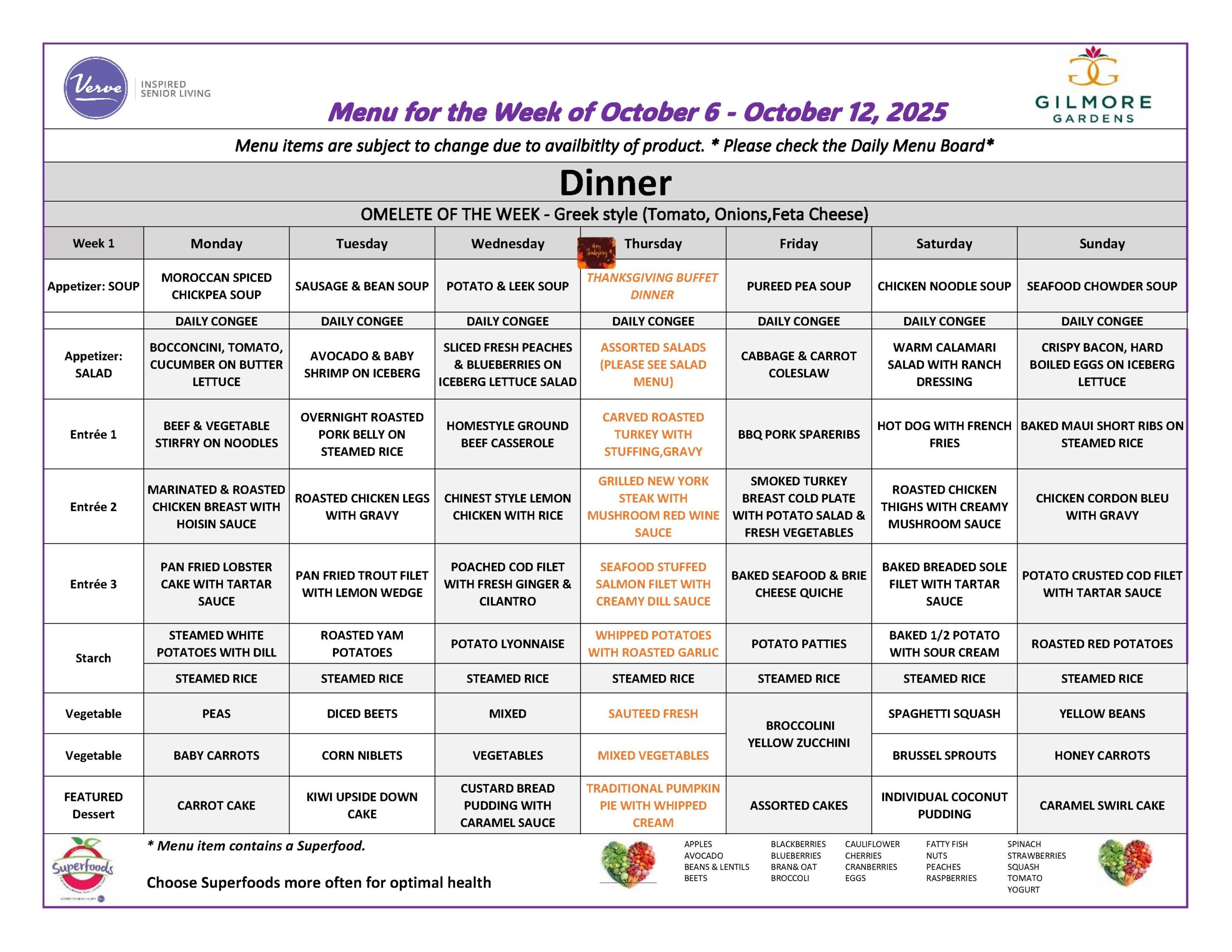 October 6th – 12th, 2025 – Weekly Dining Menu!