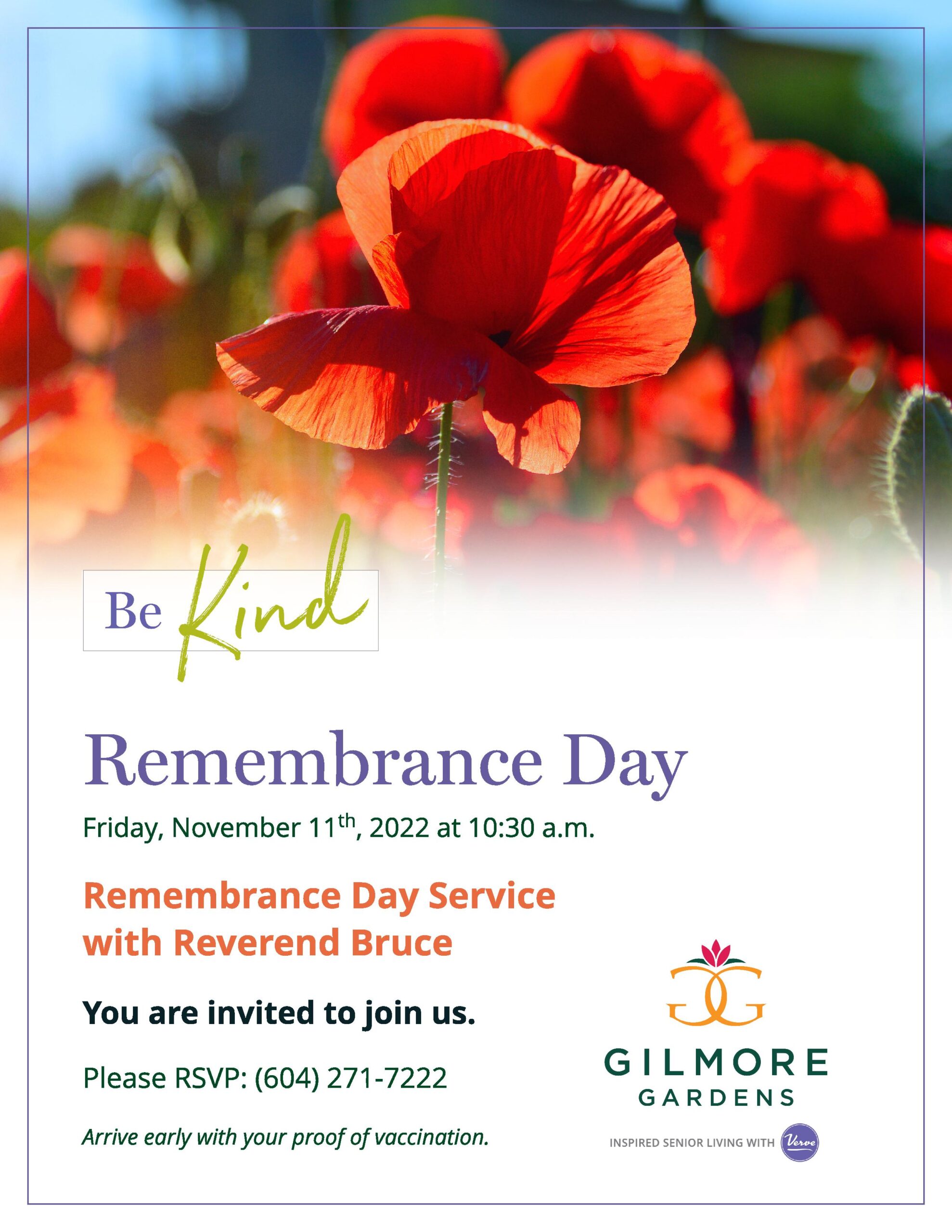 Join us for our Annual Remembrance Day Service at Gilmore Gardens.