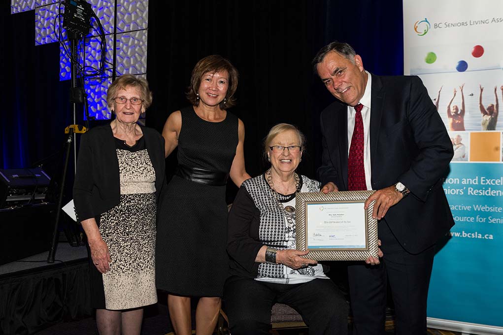 We are thrilled to announce that Sally Houston, Resident of Gilmore Gardens, was a co-winner of Resident of the Year by BCSLA’s Let’s Embrace Aging Passionately. Gilmore would like to thank Sally for contributing all that she does within the community she lives, for being an inspiration to other residents, a champion for social causes, promoting community involvement, and improving the quality of life for so many!
