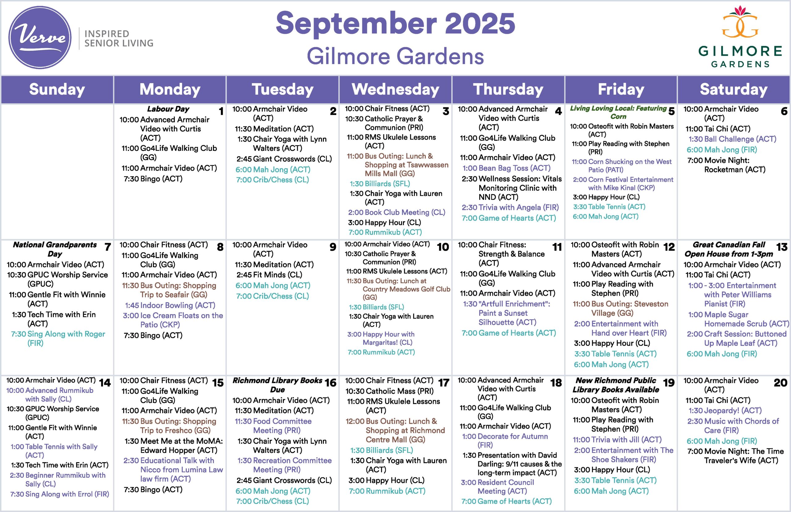 September 2025 – Monthly Activity Calendar