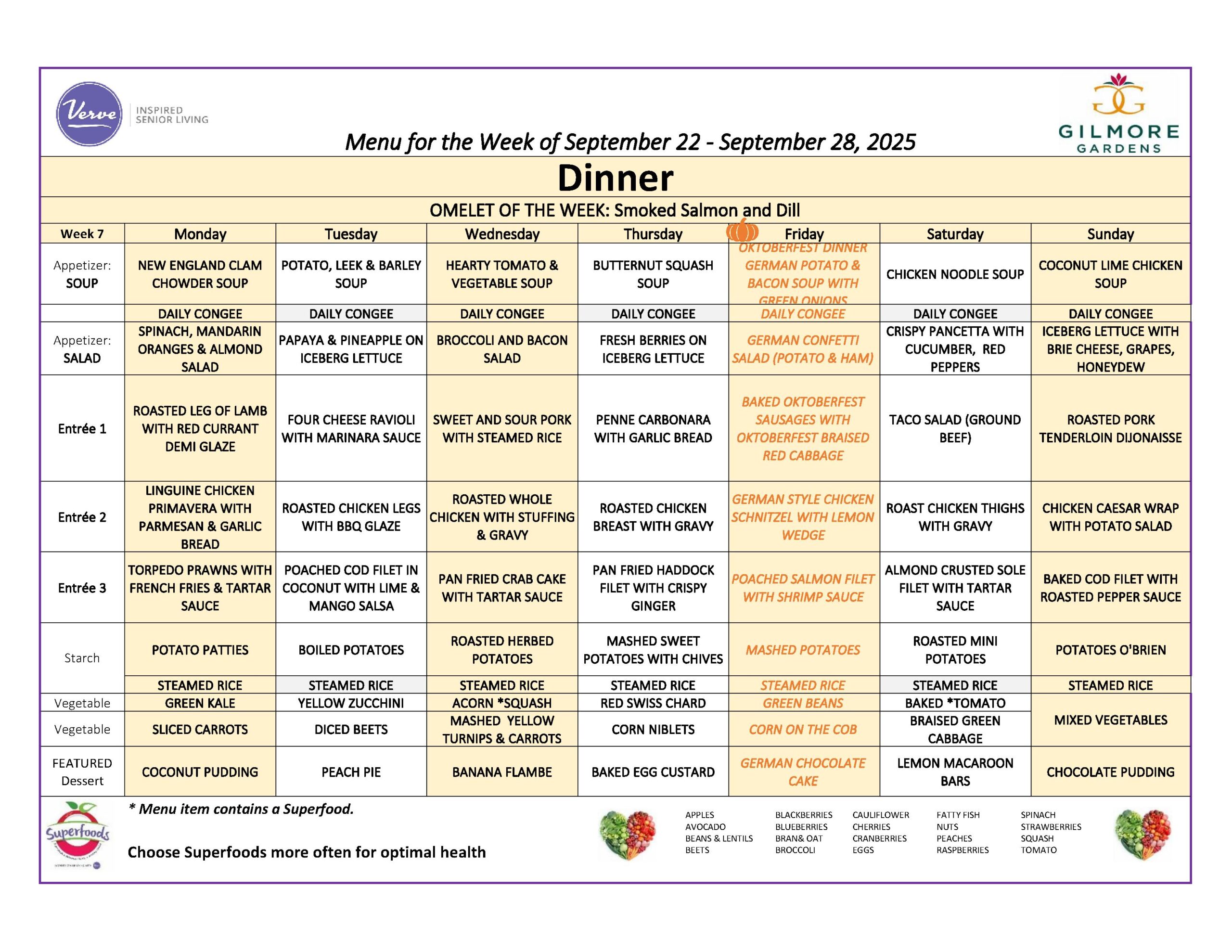 September 22nd – 28th, 2025 – Weekly Dining Menu!