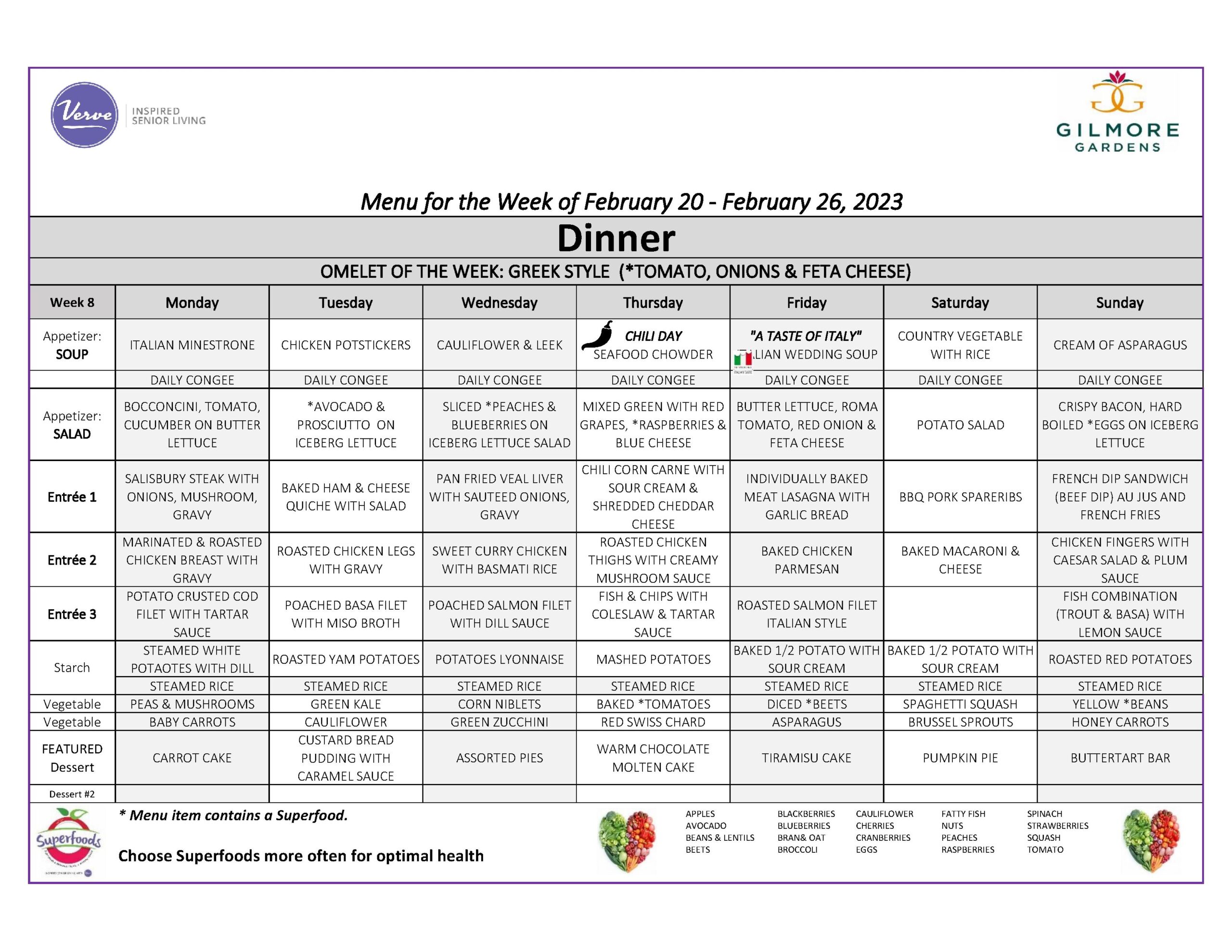 Check out what’s on the menu from February 20th – February 26th!
