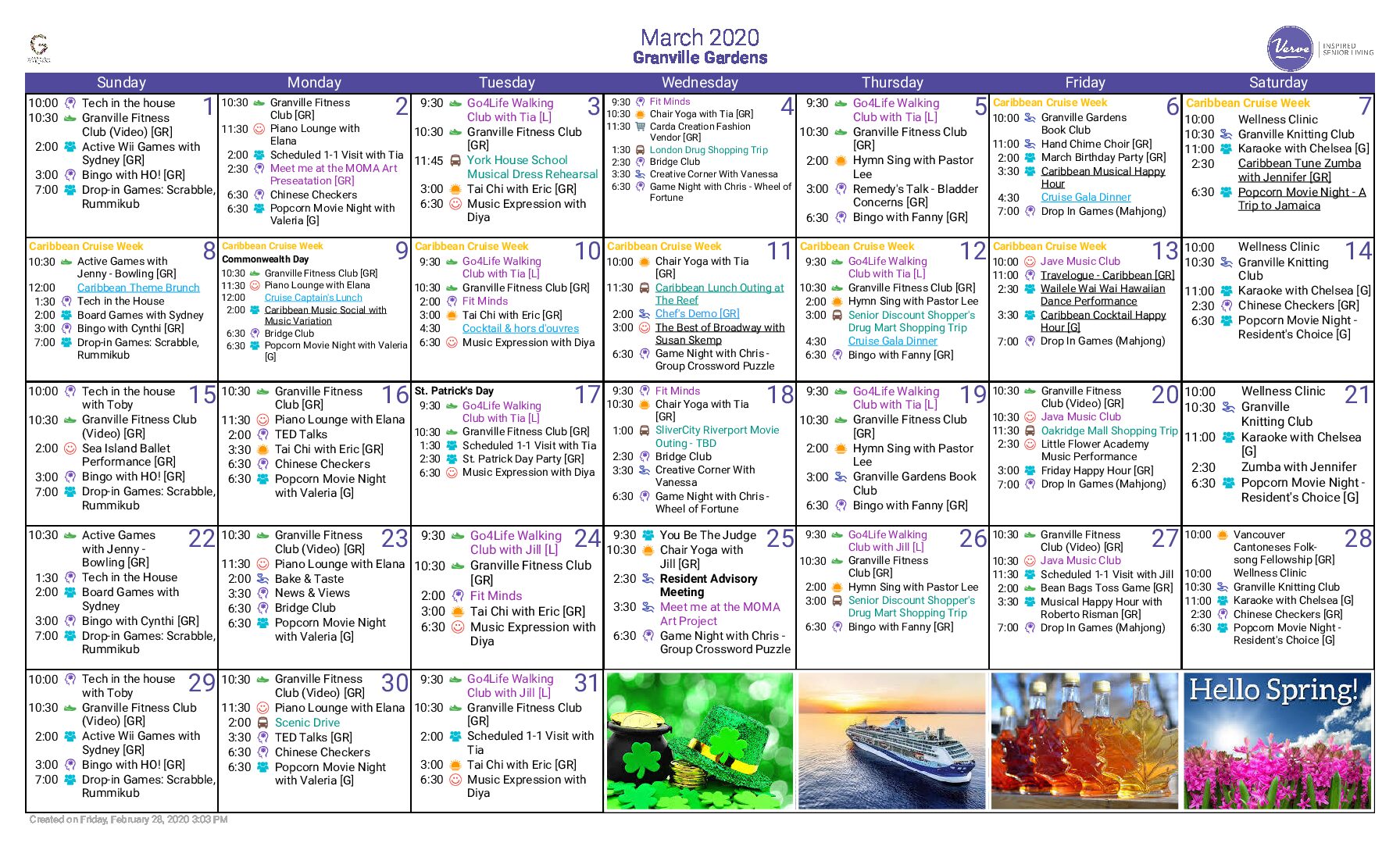 March 2020 Activity Calendar