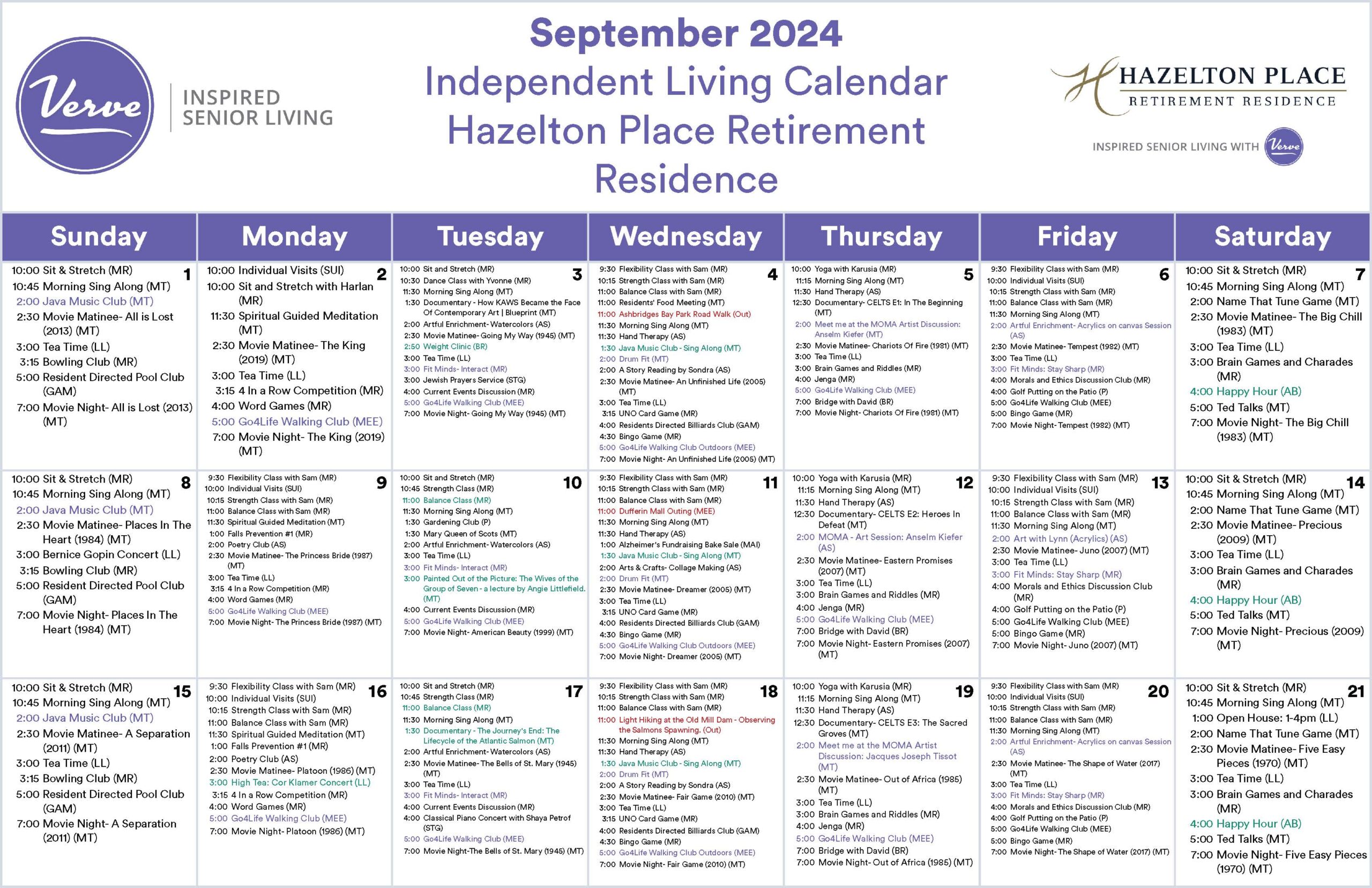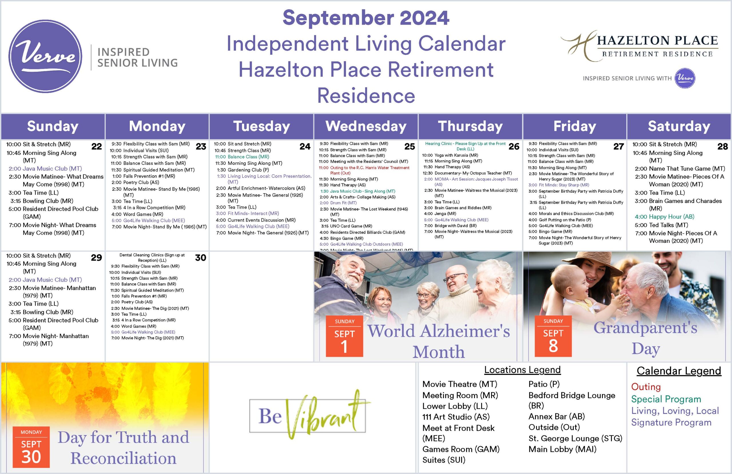 September 2024 – Monthly Independent Living Activity Calendar!